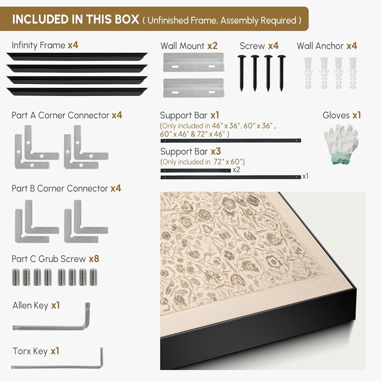 • Assembly Required: The artwork comes with the frame components unassembled. Don’t worry — setup is straightforward and tool-friendly. For best results and accurate alignment, we recommend two people to ensure a smooth assembly and a stable, secure wall mount.