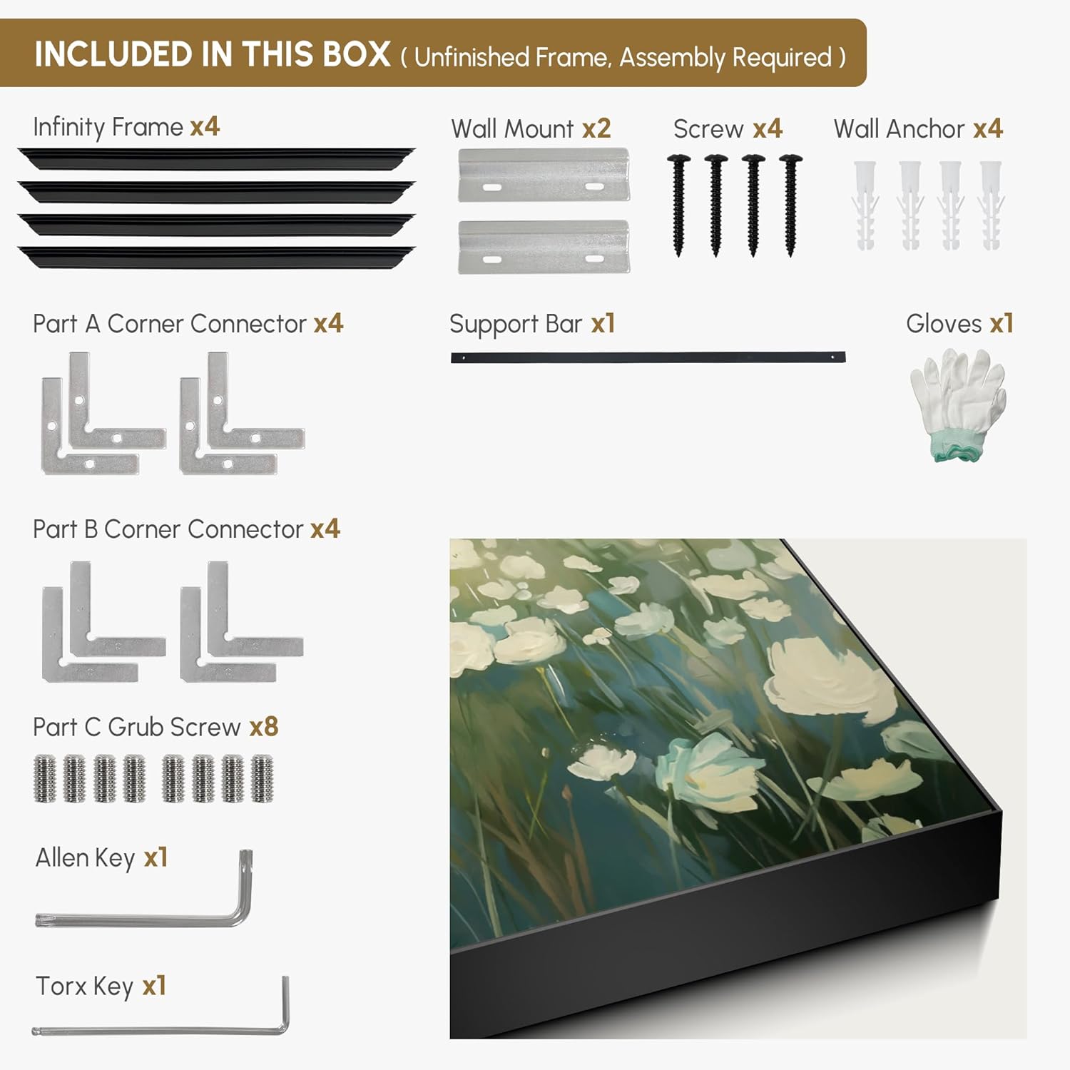 • Assembly Required: The artwork comes with the frame components unassembled. Don’t worry — setup is straightforward and tool-friendly. For best results and accurate alignment, we recommend two people to ensure a smooth assembly and a stable, secure wall mount.