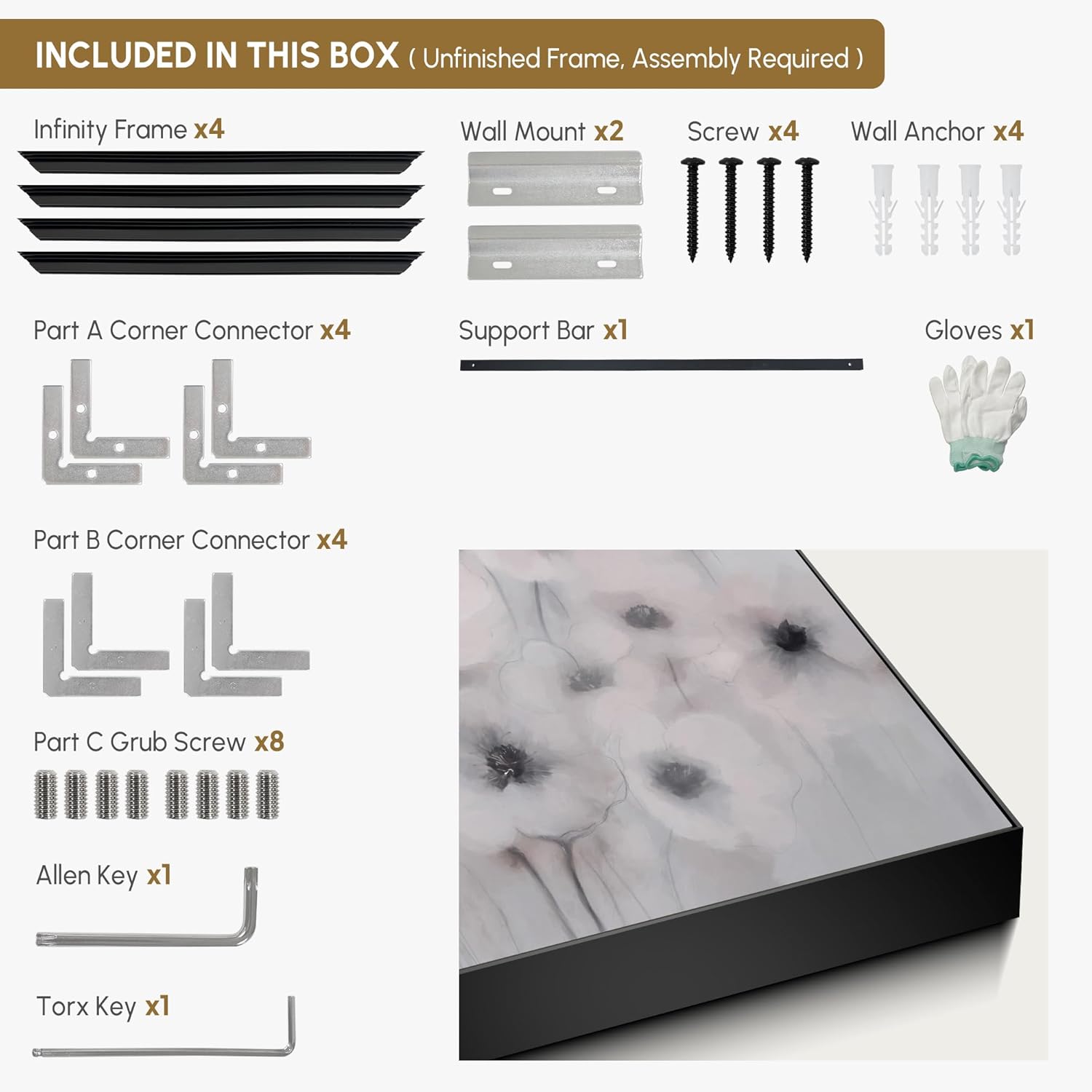 • Assembly Required: The artwork comes with the frame components unassembled. Don¡¯t worry ¡ª setup is straightforward and tool-friendly. For best results and accurate alignment, we recommend two people to ensure a smooth assembly and a stable, secure wall mount.