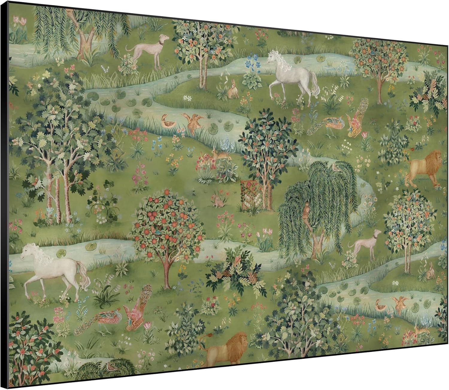 SIGNWIN 36"x46" Extra Large Framed Wall Art Medieval Fantasy Forest with Woodland Animals, Storybook-Inspired Scene for Home Living Room Bedroom Decor (Frame Assembly Required)