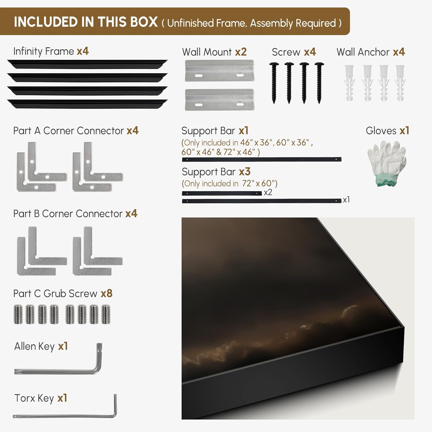 • Assembly Required: The artwork comes with the frame components unassembled. Don¡¯t worry ¡ª setup is straightforward and tool-friendly. For best results and accurate alignment, we recommend two people to ensure a smooth assembly and a stable, secure wall mount.