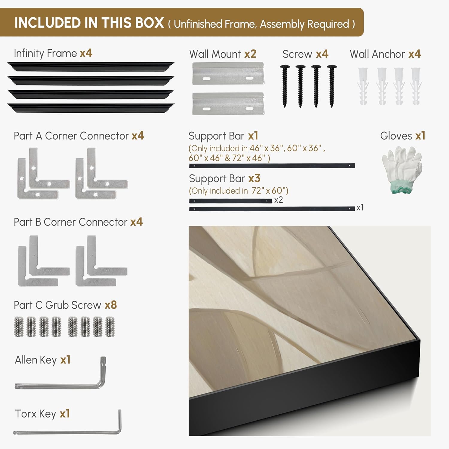 • Assembly Required: The artwork comes with the frame components unassembled. Don’t worry — setup is straightforward and tool-friendly. For best results and accurate alignment, we recommend two people to ensure a smooth assembly and a stable, secure wall mount.
