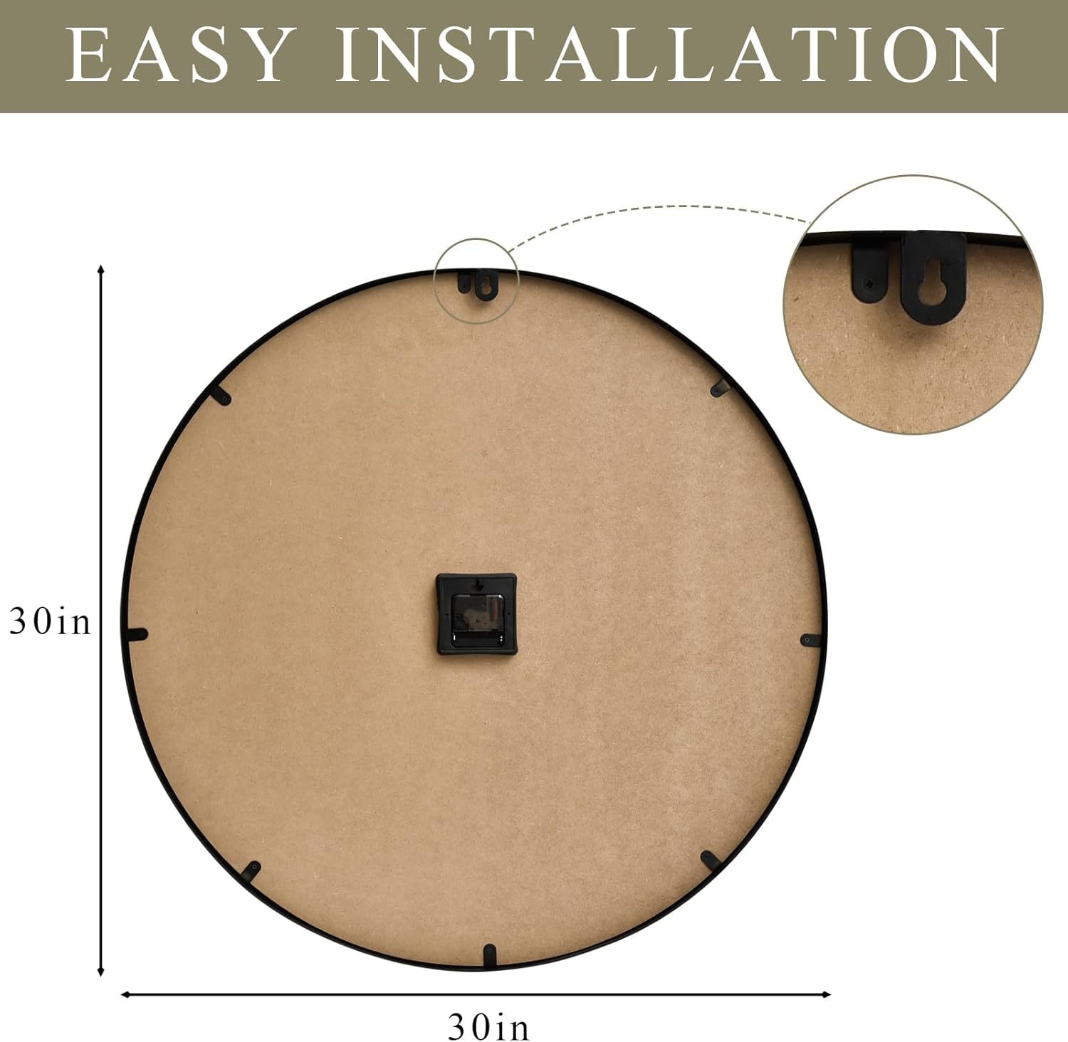• MASSIVE 30-INCH PRESENCE & CLEAR VISIBILITY: Command attention! This oversized 30-inch diameter clock acts as a stunning centerpiece. Large, engraved numerals guarantee effortless time-reading from anywhere in the room.