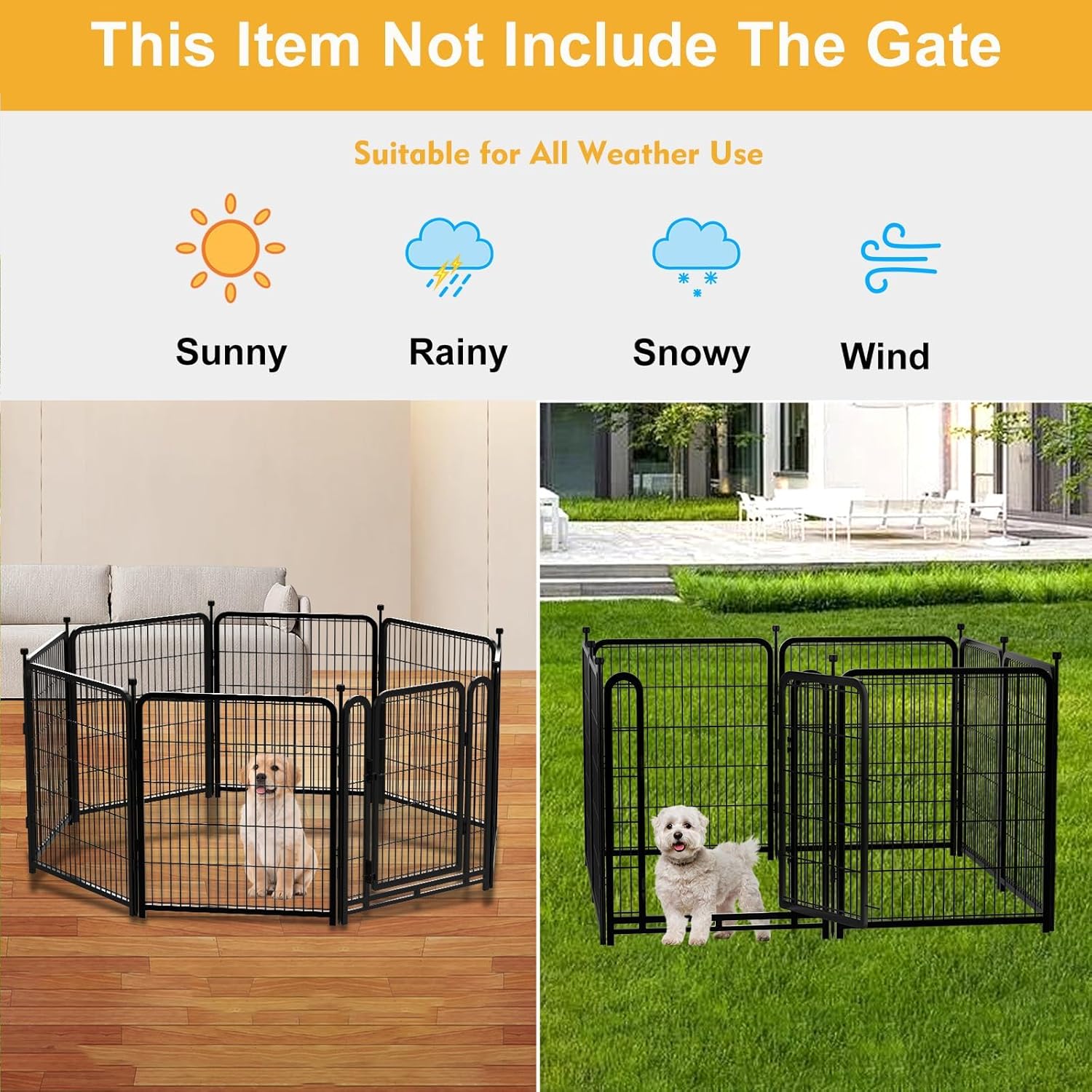 • Easy and Secure Installation: This Dog Fence Does Not Need Tools to Install, You Just Need to Align The Metal Rod with The Connecting Hole of The Two Sides of The Board and Insert It, You Can Connect Them, When You Use Outside, You Can Insert The Metal Rod Tip Into The Ground, The Fence Will be Very Stable, Will Not be Knocked Down Easily; When You Use It Indoors, You Can Wear A Rubber Protective Cover for The Metal Insert Tip So The Fence Won't Scratch Your Floor