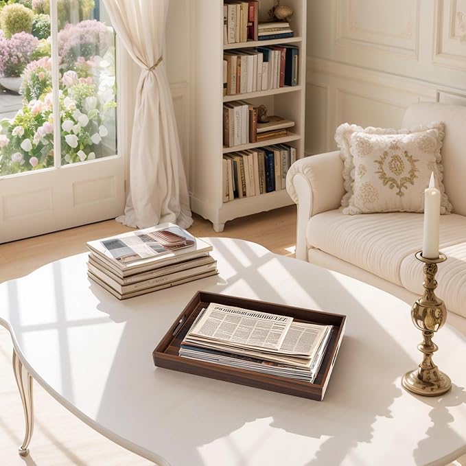 • Suitable for a Wide Range of Uses: Designed for more than just serving—use this elegant wooden serving tray to serve breakfast in bed on a lazy weekend, present snacks and drinks to guests, or organize daily essentials like remotes, keys, or candles. Its 17"x12" size provides ample space while fitting comfortably on coffee table, ottoman, kitchen counter, or vanity.
