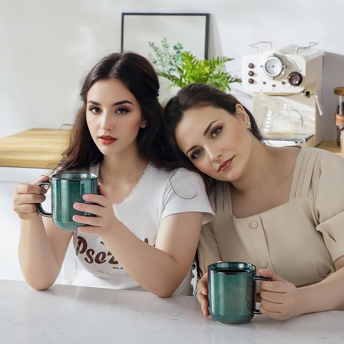 vancasso STARRY Coffee Mugs Set, 16 oz Ceramic Coffee Cups for Americano Hot Tea Iced Coffee Cold Brew Cocoa Milk Stoneware Mugs Set of 6, Dishwasher & Microwave Safe, Green