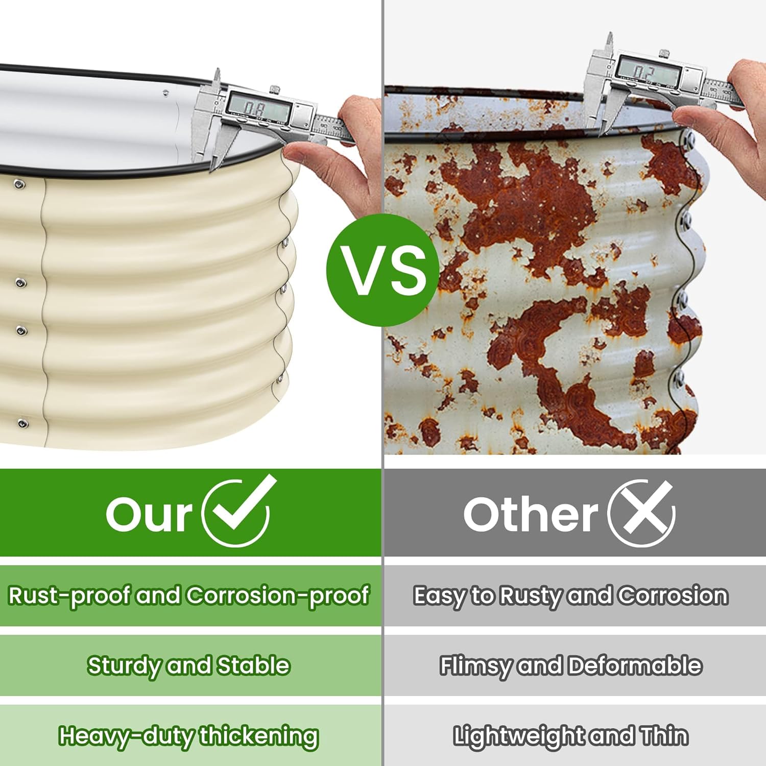 • Long-Lasting Quality:The garden beds are made of zinc aluminum-magnesium steel for durability. This advanced material is more resistant to corrosion and rust than traditional galvanized materials. Lasts 2-6 times longer than traditional galvanized raised beds, far longer than wood raised garden bed.