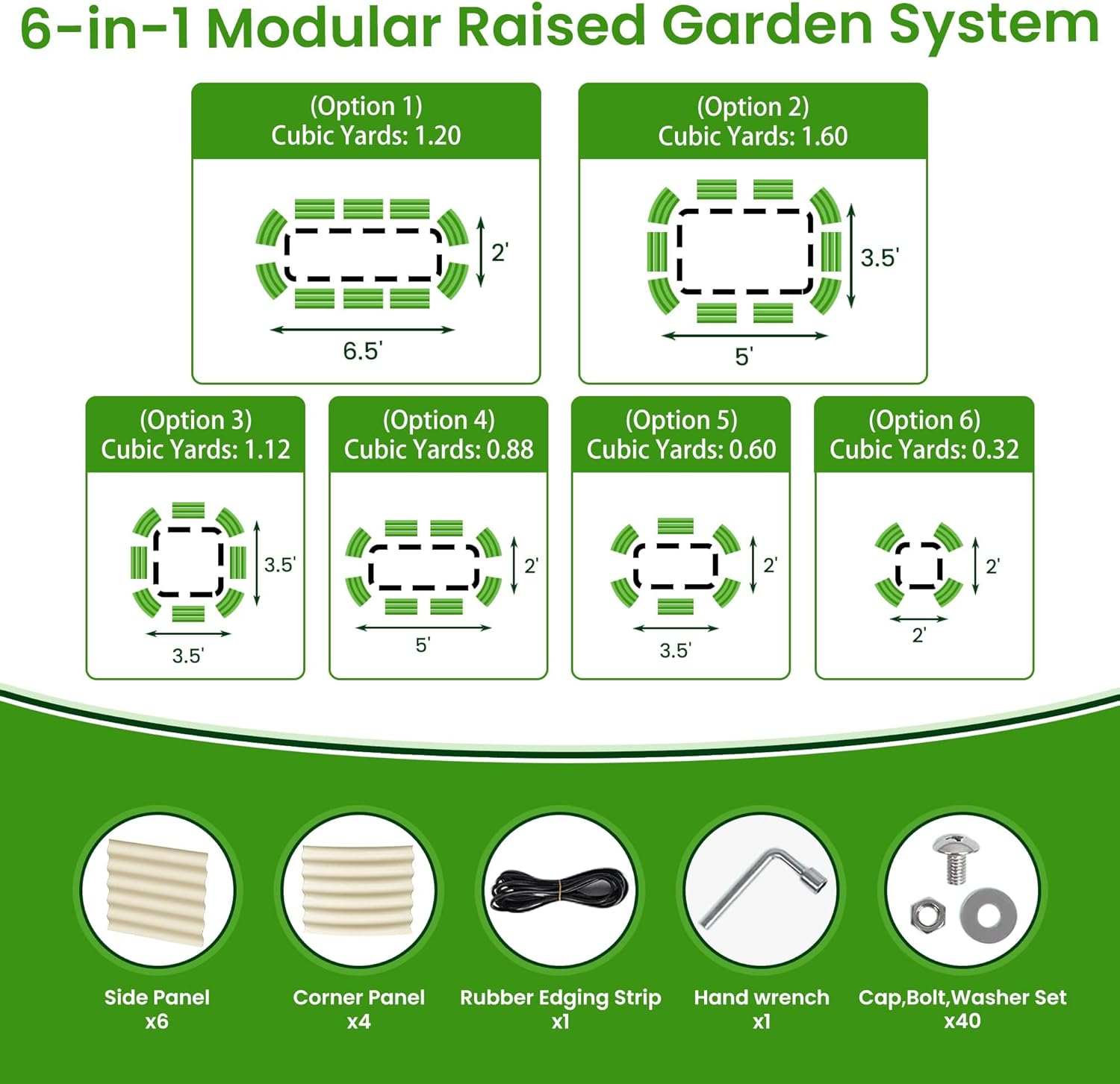 • Modular Raised Garden Bed:Our 6-in-1 modular kit means you can assemble one of 6 configurations,Pick your favorite one and then assemble your garden bed to fits your unique home garden space perfectly.