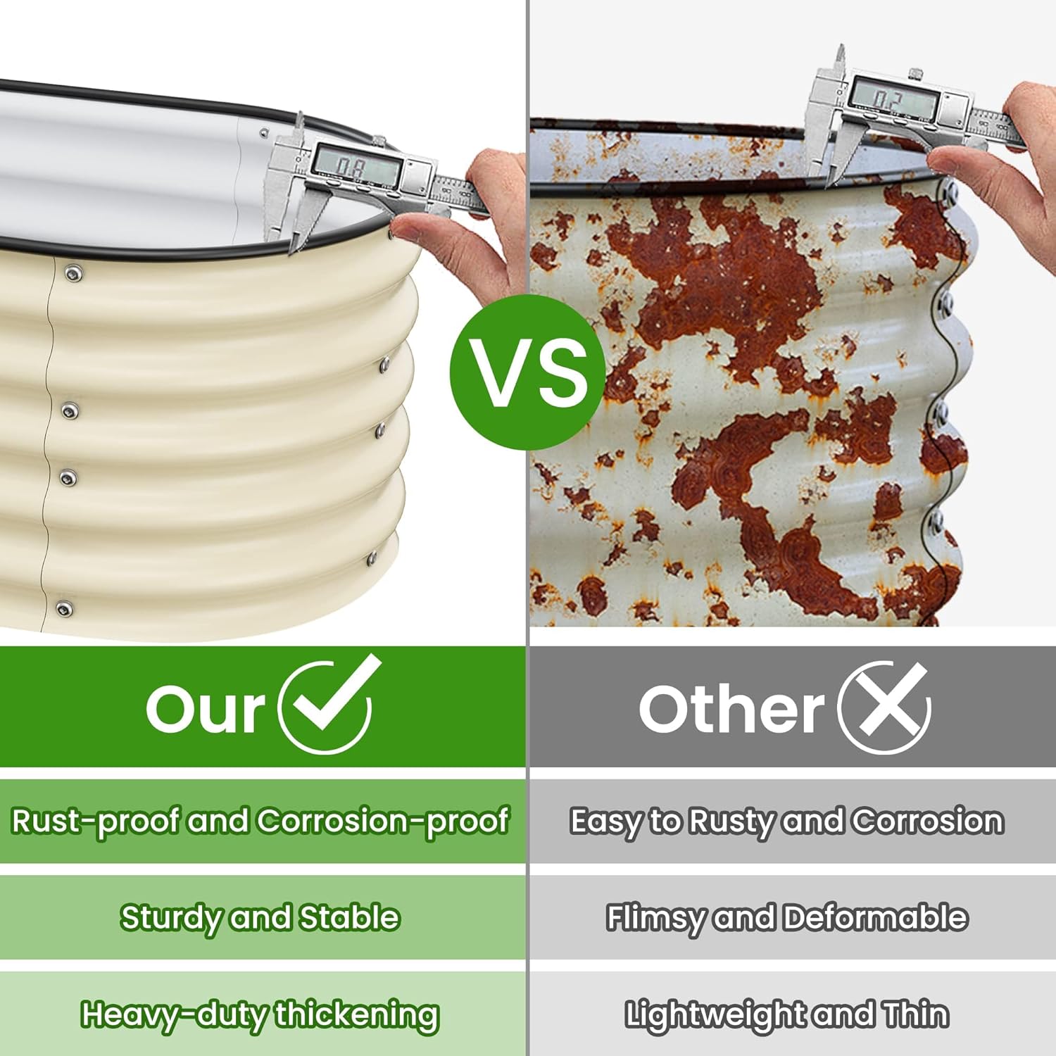• Long-Lasting Quality:The garden beds are made of zinc aluminum-magnesium steel for durability. This advanced material is more resistant to corrosion and rust than traditional galvanized materials. Lasts 2-6 times longer than traditional galvanized raised beds, far longer than wood raised garden bed.