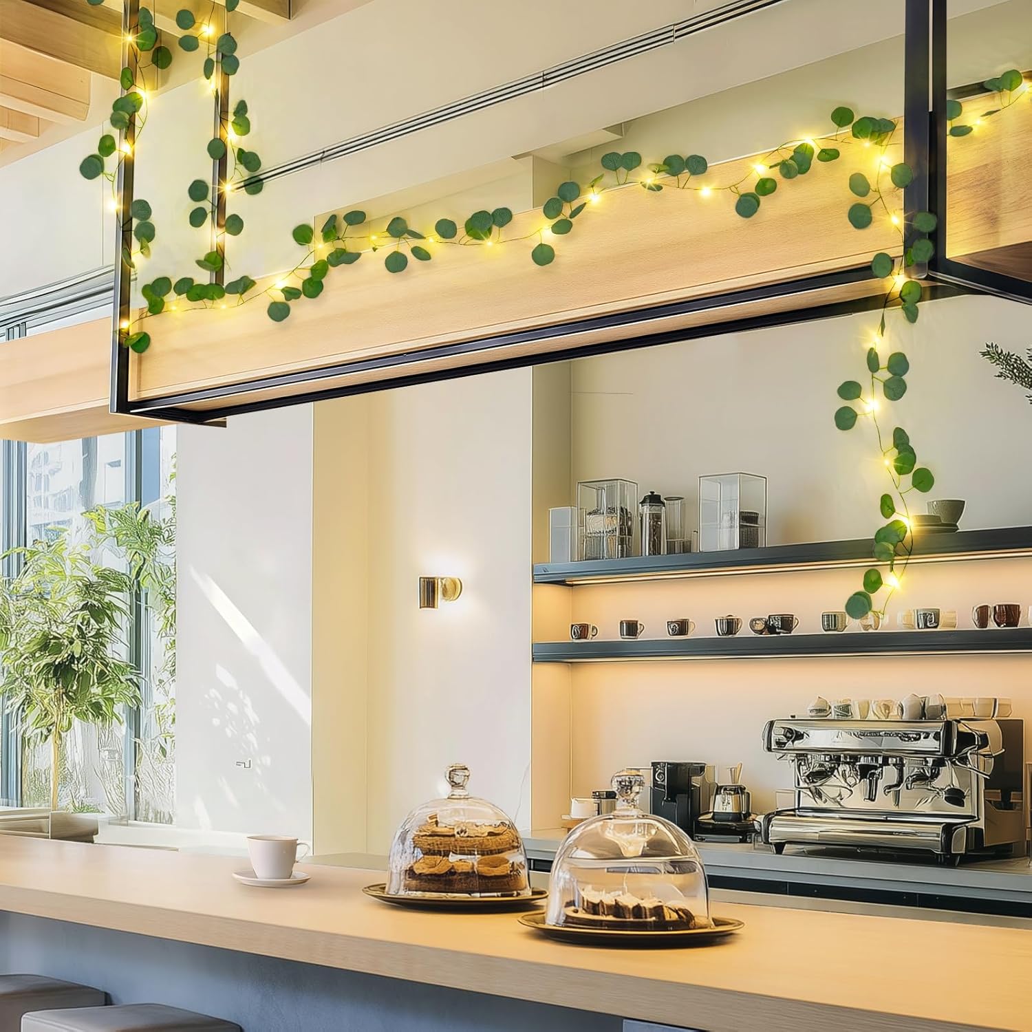 • 100 LED Vines with Lights: The 100 LED vines with lights are designed with Eucalyptus-shaped leaves, integrating eucalyptus leaves vines and fairy lights to save you installation time. The warm light emitted by the vine with lights will add charm to indoor spaces. The lifelike vines with lights enliven and add color to your bedroom, wall, classroom, cafe, tent, fireplace, table shelves Birthday Wedding Party to makes your life vibrant