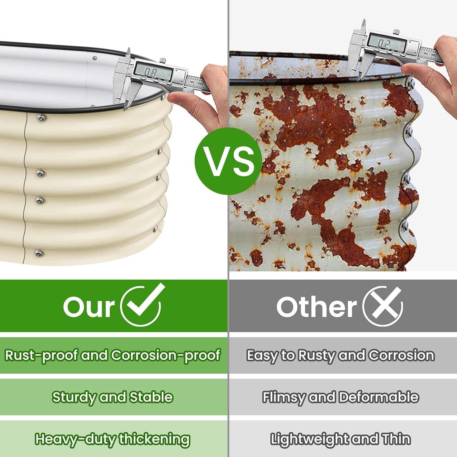 • Long-Lasting Quality:The garden beds are made of zinc aluminum-magnesium steel for durability. This advanced material is more resistant to corrosion and rust than traditional galvanized materials. Lasts 2-6 times longer than traditional galvanized raised beds, far longer than wood raised garden bed.