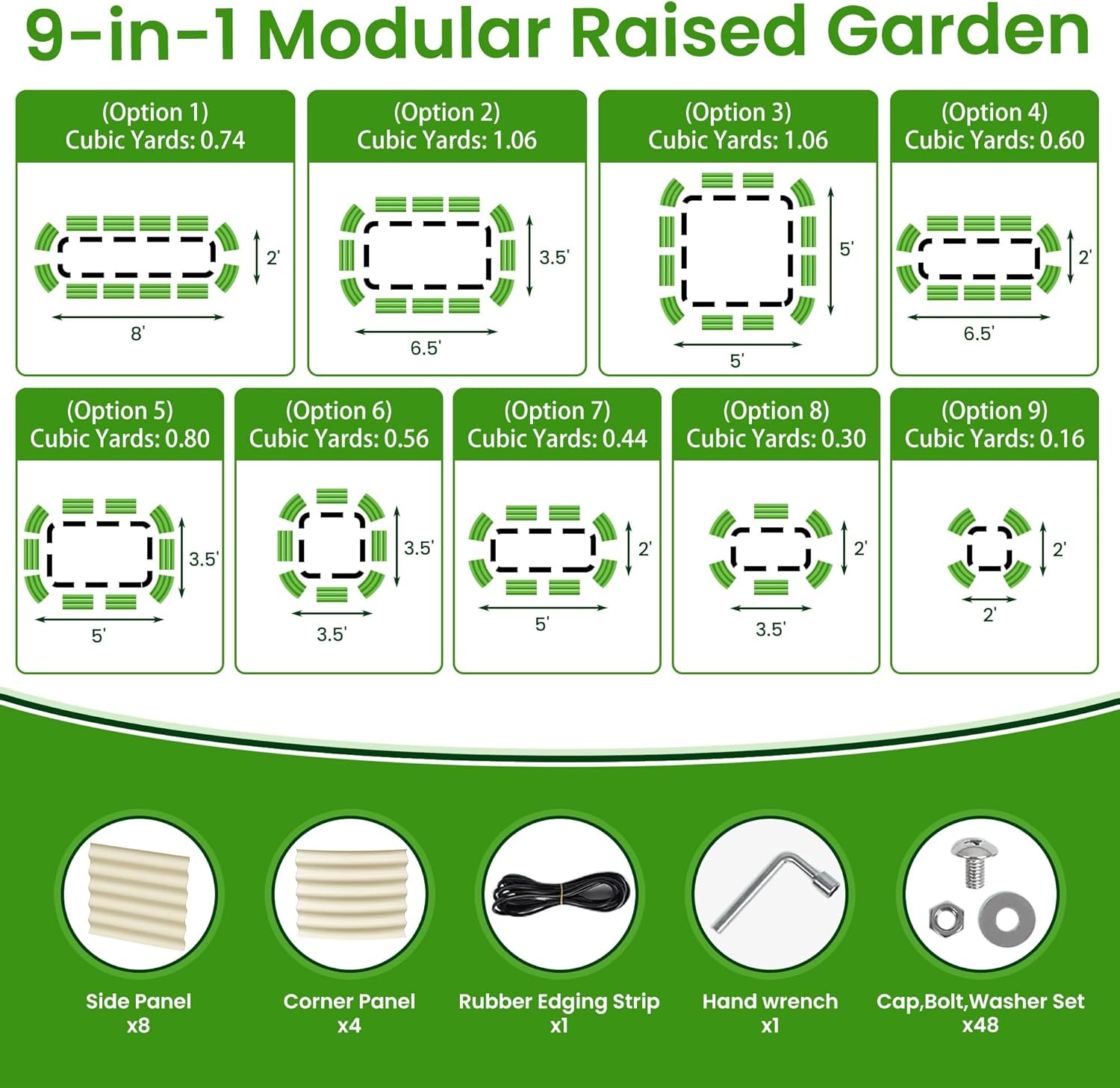 • Modular Raised Garden Bed:Our 9-in-1 modular kit means you can assemble one of 9 configurations,Pick your favorite one and then assemble your garden bed to fits your unique home garden space perfectly.