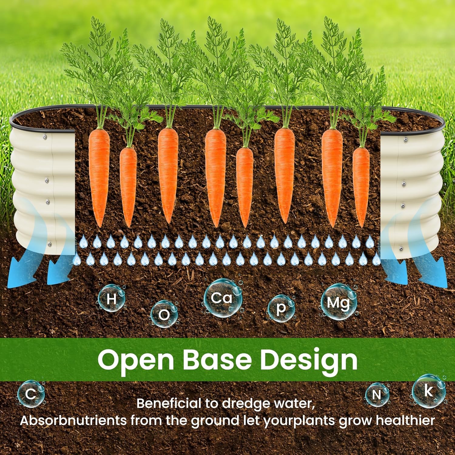 • Open Base Design:This metal raised garden bed is designed with an open base, makes this the perfect space to layer yard waste,grass clippings, fruits/veggies, or coffee grounds, to create enriched soil in your own backyard,It allow the roots absorb better nutrients, providing good drainage, and protect your plants.