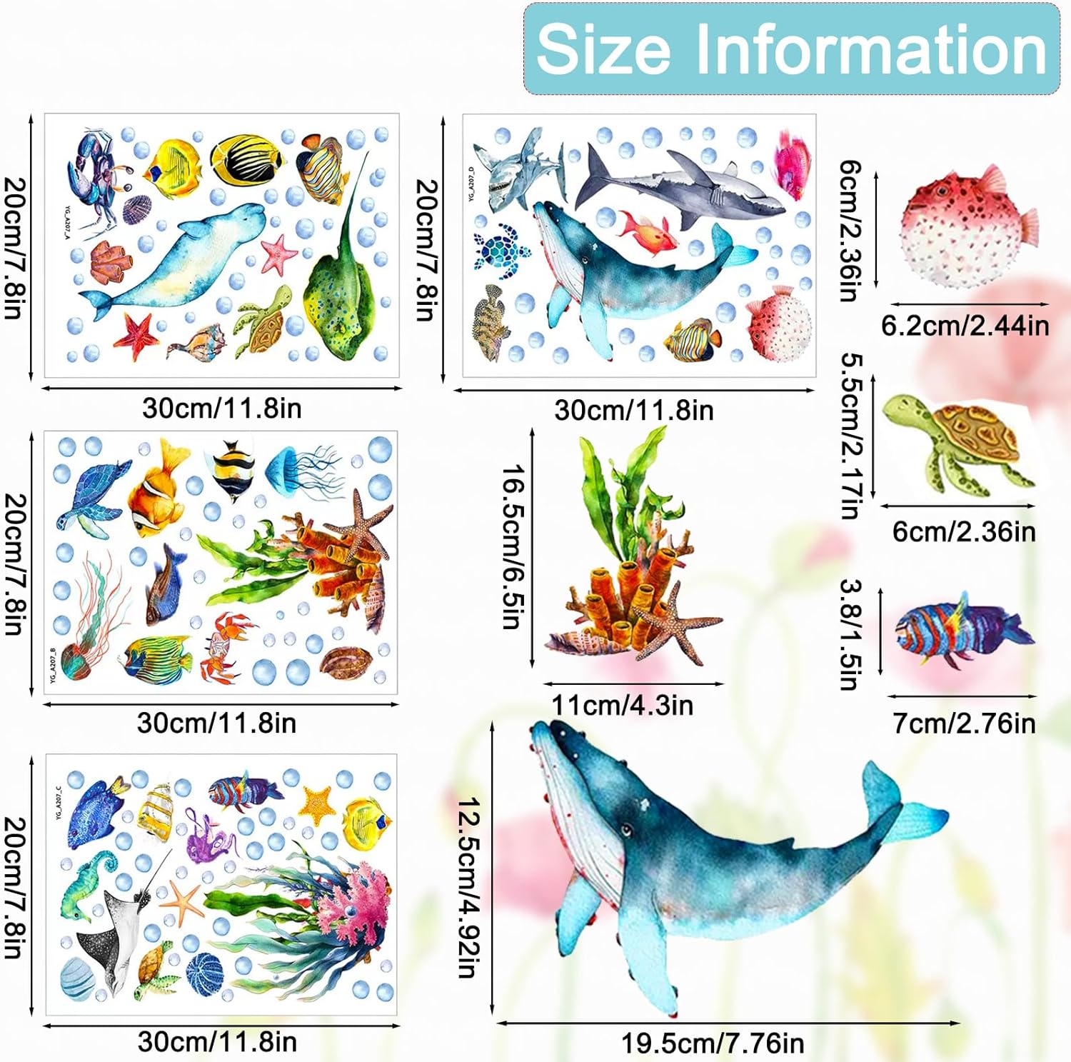 • Safe & Reusable Wall Stickers: The ocean wall decals are made of durable, waterproof PVC with strong self-adhesive backing. Repositionable without losing stickiness-peel & re-stick for mess-free decorating! Perfect for bedrooms, playrooms, classroom, nursery,day-cares, or even dorm decor!