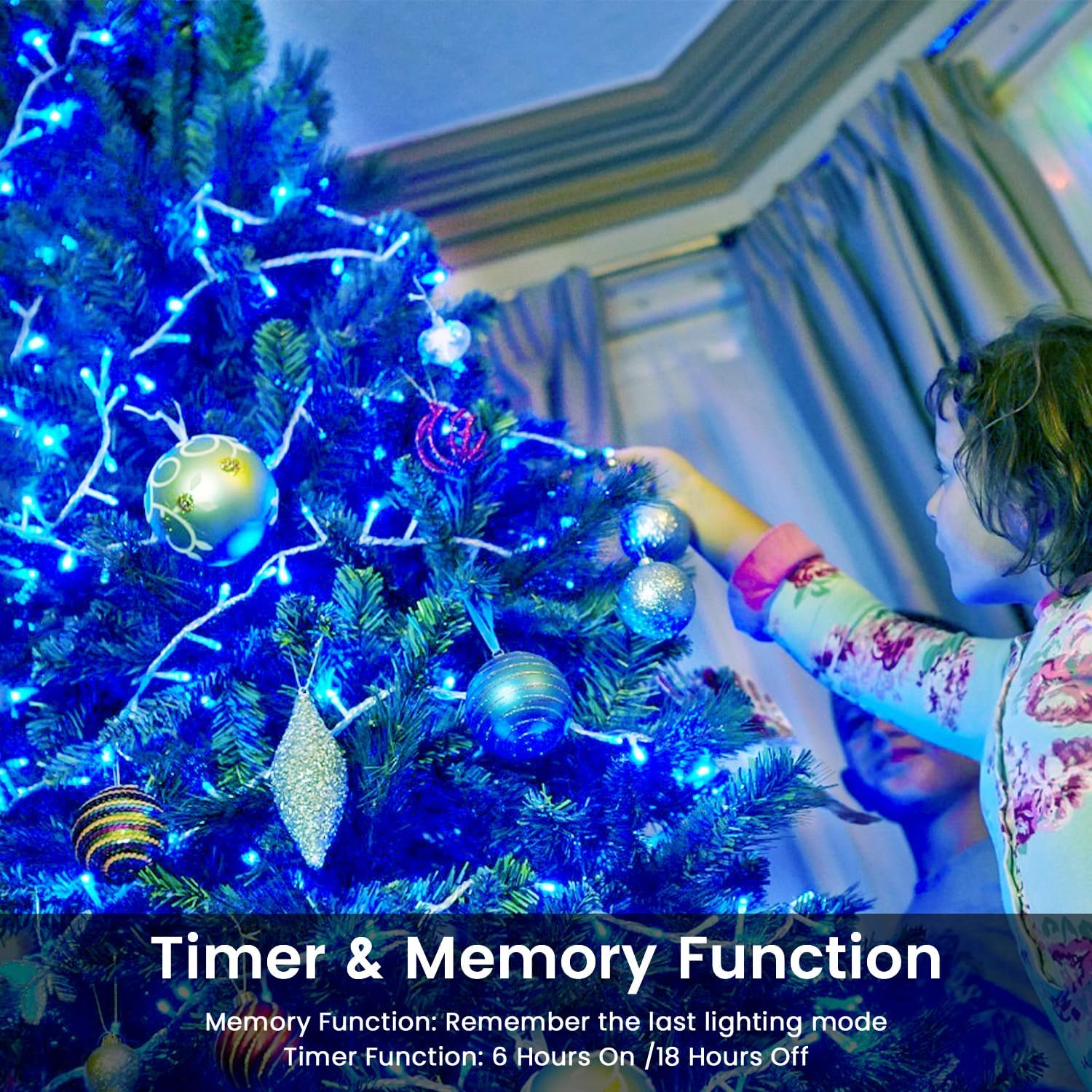 2 Pack Halloween String Lights Battery Operated with Timer, 66FT 200 LED Waterproof Battery Twinkle Lights, 8 Modes Fairy Light for Indoor & Outdoor Party Bedroom Garland Tree Christmas Decor (Blue)