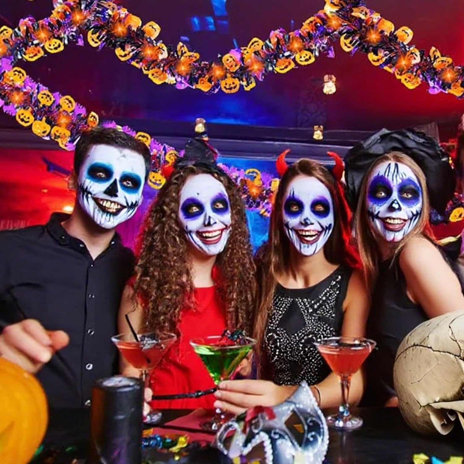 • [Wide Application]-You can hang this Halloween garland on walls,doors,ceilings,tables,stairs, windows,branches,etc.The Halloween garland have metal wires inside,and you can change the shape and length according to your needs.Perfect for Halloween,horror themed parties,home,stores during the holidays to add more scary Halloween atmosphere.