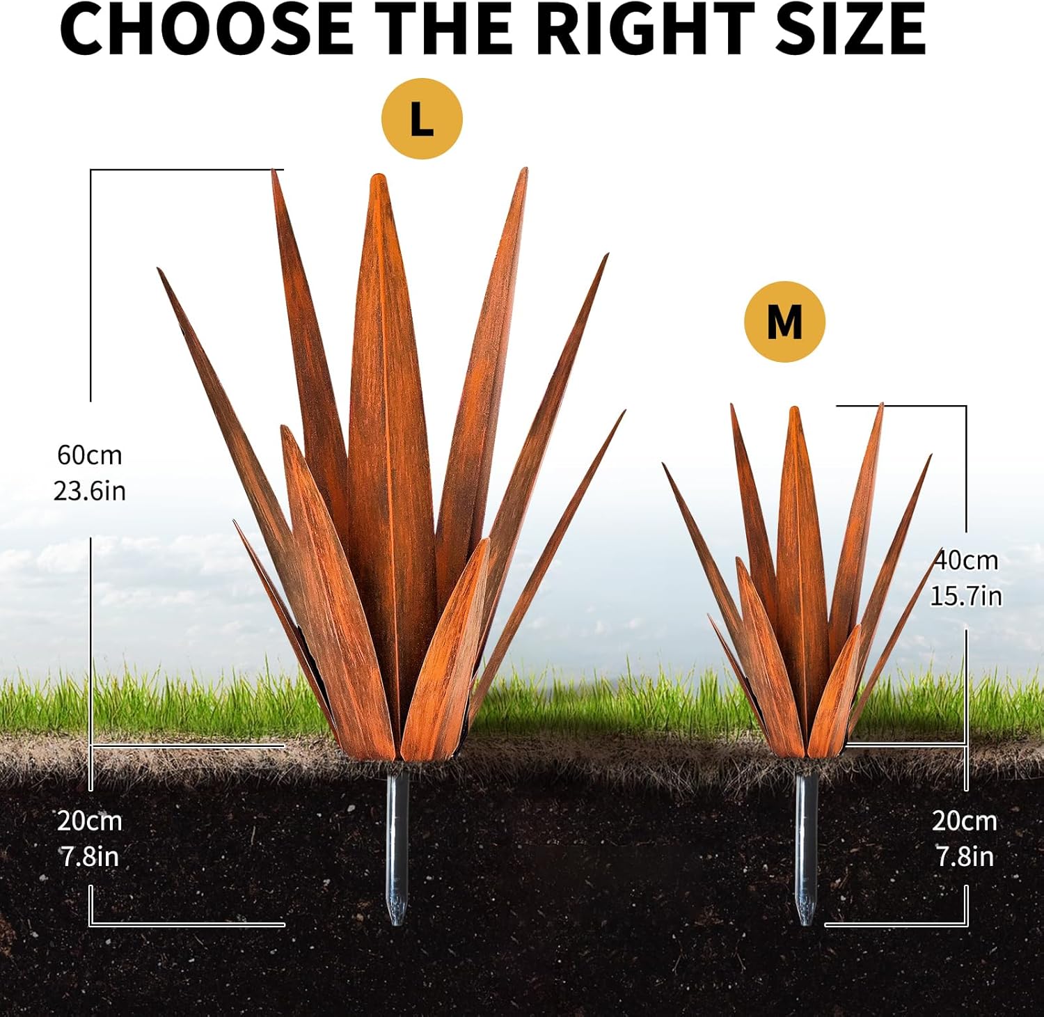 Metal Agave Plants, Tequila Rustic Sculpture, Metal Yard Art, Outdoor Lawn Ornaments Yard Stakes (Rusty- L)
