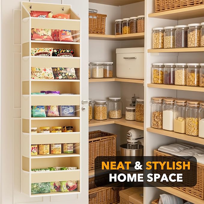 • ORGANIZED AND BEAUTIFUL - Make your behind the door space neat and organized with this beige over the door storage and organizer with 5 clear pockets and 10 mesh side pockets; Product Size: 15.2"W x 6.6"D x 55"H