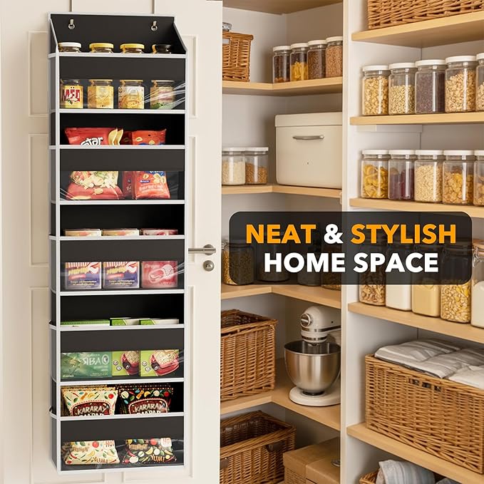• EASY TO ASSEMBLE - Just attach the hook to the door, hang the organizer on it, and insert the included bottom cardboards; Featuring specially designed metal hooks that accommodate doors up to 1.98" thick