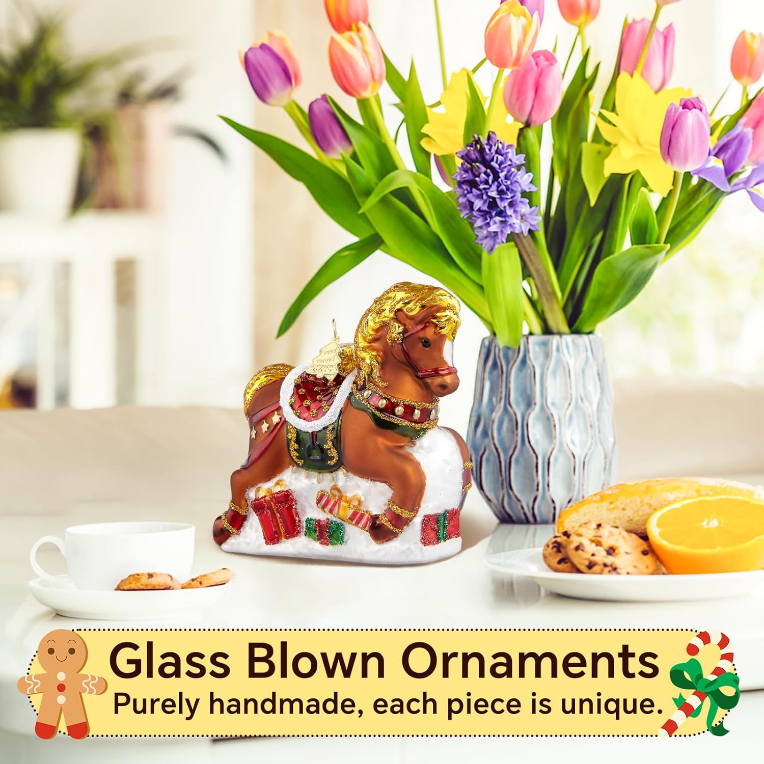 • High-Quality Material: The size of this Horse ornaments for Christmas tree is 3.11*1.26*3.27 in. Hand-blown glass christmas ornaments have a delicate and smooth surface, no pungent odor, are not easily damaged during natural use, and are easy to clean with a soft cloth