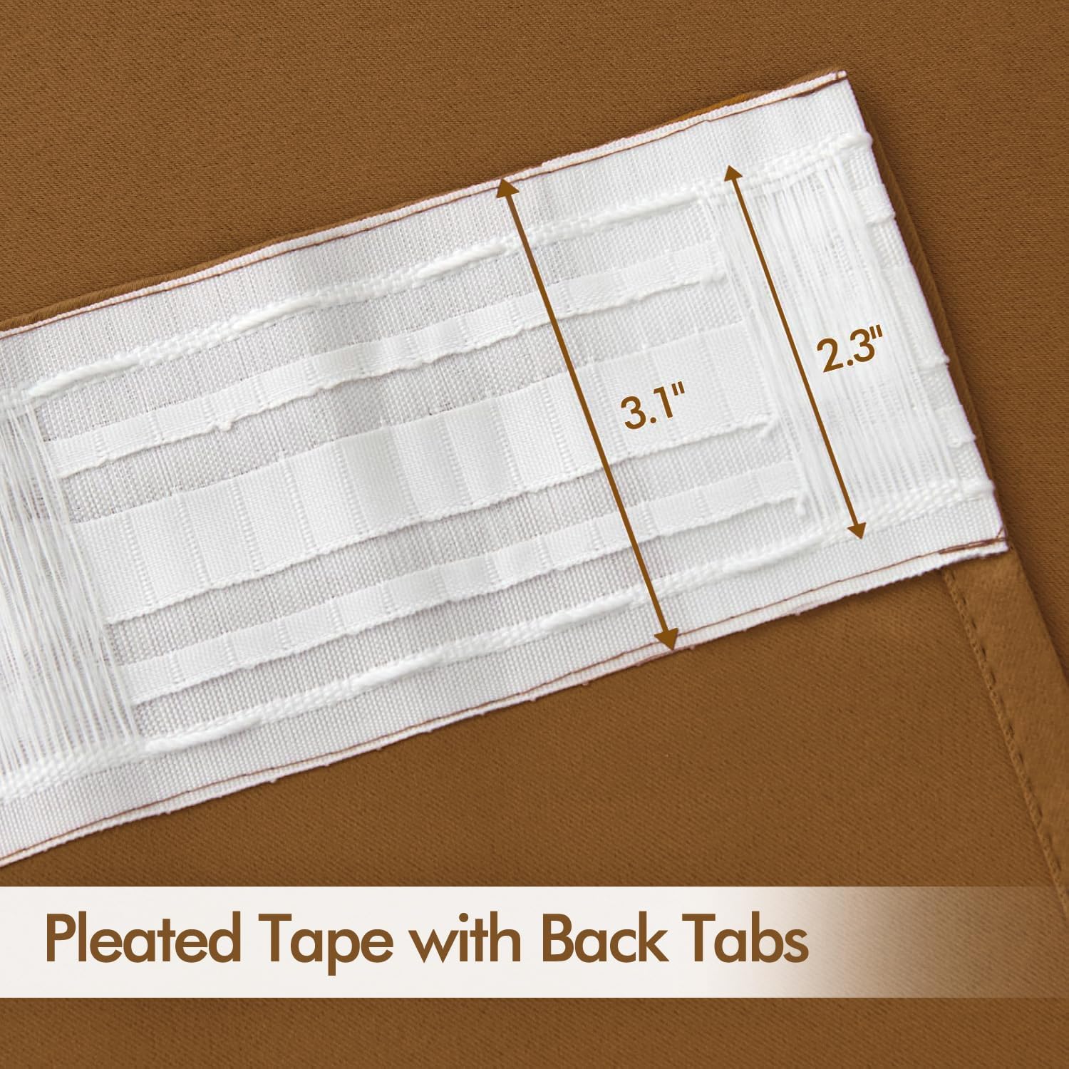 MIULEE Golden Brown Back Tab Blackout Curtain 96 Inch Long 2 Panels Set for Bedroom, Rod Pocket/Pinch Pleat Thermal Insulated Living Room Darkening Pleated Light Blocking Floor to Ceiling Drape