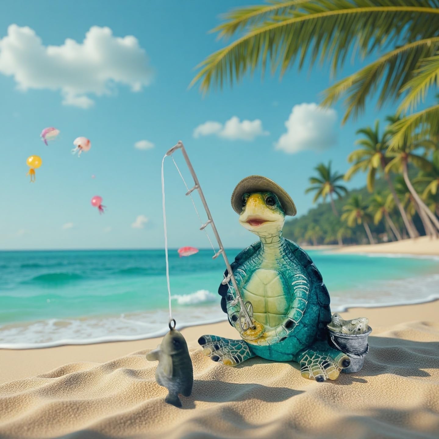 • MULTIPURPOSE DECORATION: Sea Turtle Fishing Statue is perfect for sea turtle enthusiasts collection and your home, interior, garden, desk, bedroom and shelves decorations, adding a unique oceanic touch to your living space.