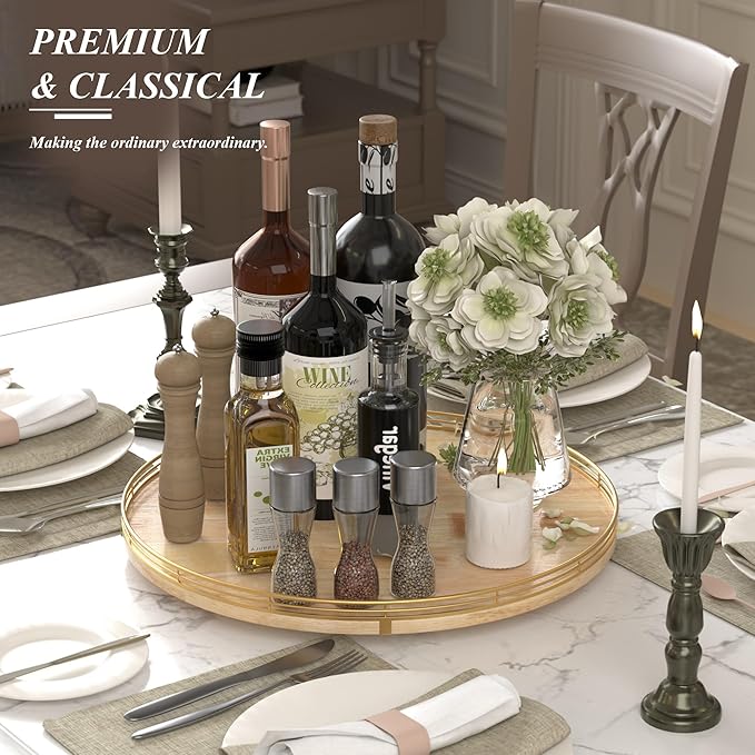 • Extra-Large 18” Surface – Perfect size for family-style dining, buffet spreads, charcuterie boards, condiments, or tabletop organization in kitchens, dining rooms, or coffee tables.