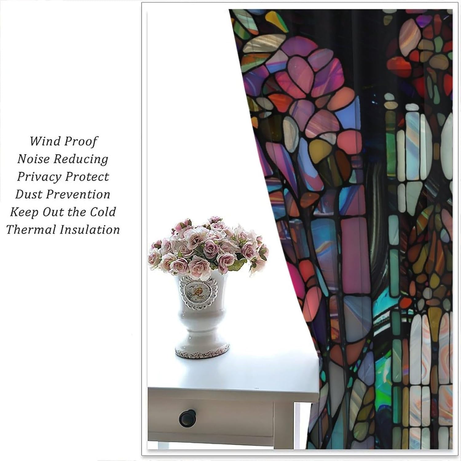 Stained Glass Curtains,Vintage Colorful Abstract Art Home Decor Drapes for Bedroom Living Room Kitchen Window Treatment 2 Panels Set Total Size 42" W X 54" L Inch