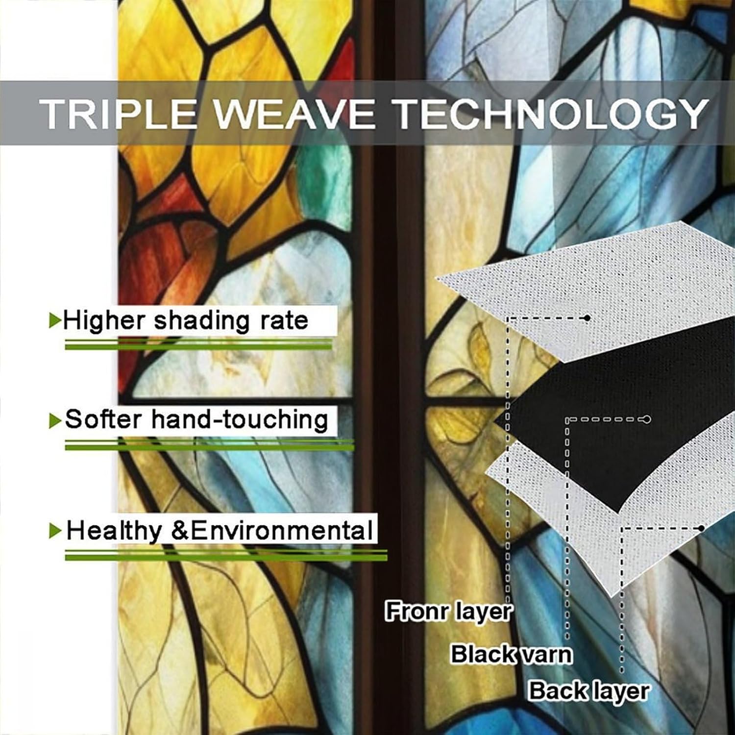 Stained Glass Curtains,Retro Abstract Colorful Art Home Decor Drapes for Bedroom Living Room Kitchen Window Treatment 2 Panels Set Total Size 42" W X 63" L Inch