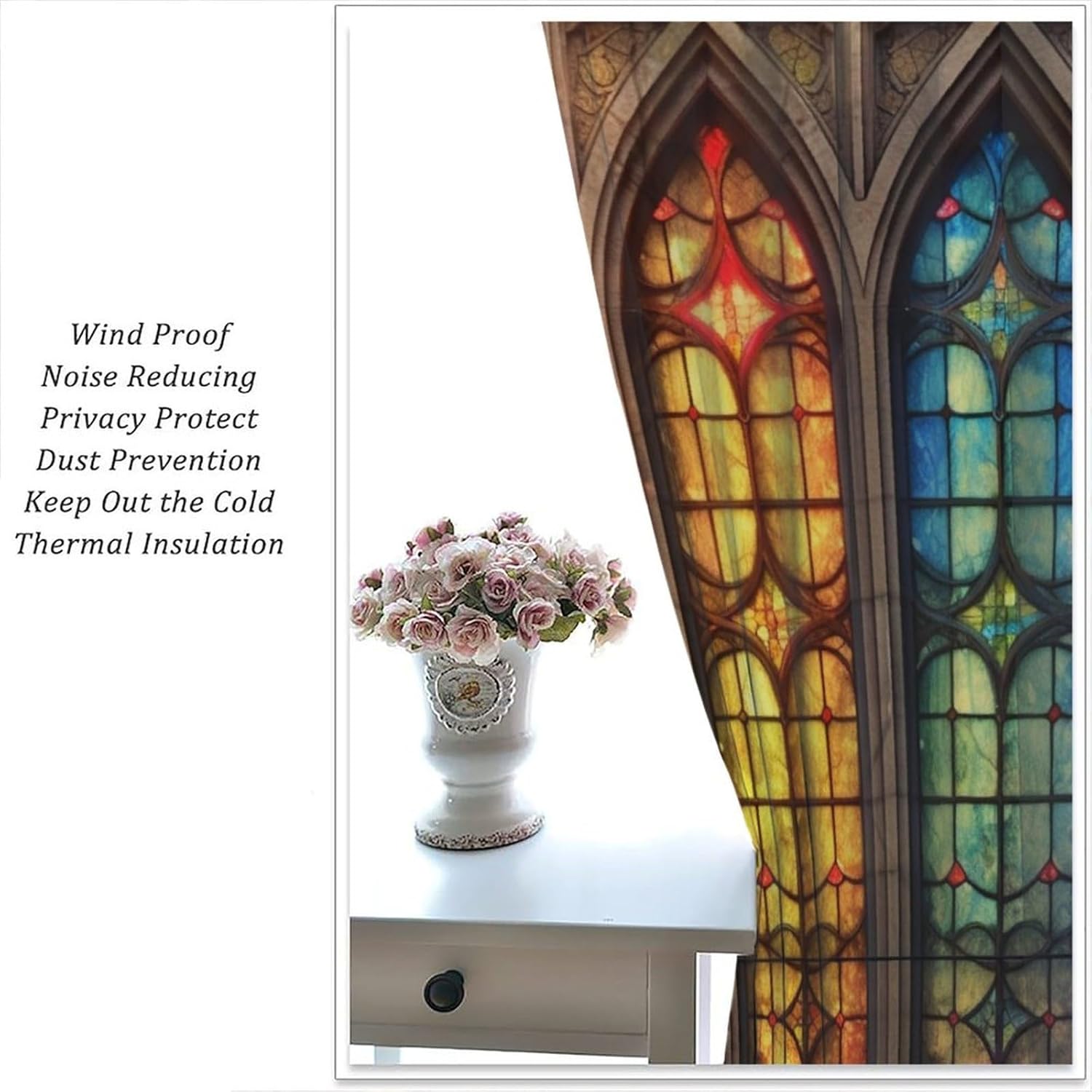 Stained Glass Curtains,Mid Century Vintage Style Abstract Art Home Decor Drapes for Bedroom Living Room Kitchen Window Treatment 2 Panels Set Total Size 42" W X 54" L Inch