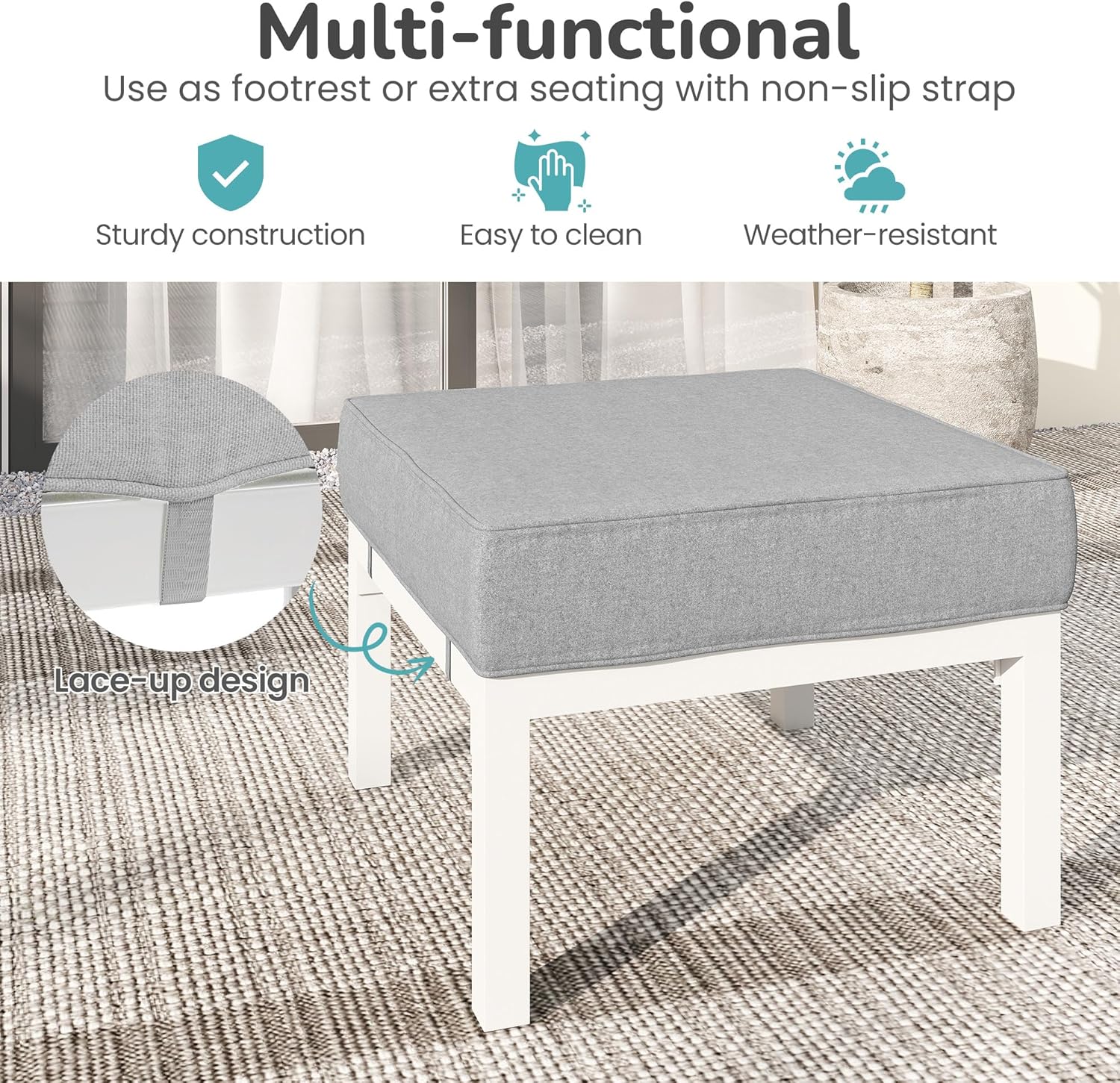 • Weather-Resistant Aluminum Frame: Crafted from lightweight aluminum, our metal patio foot stool resists rust and corrosion, ensuring durability in all weather conditions.