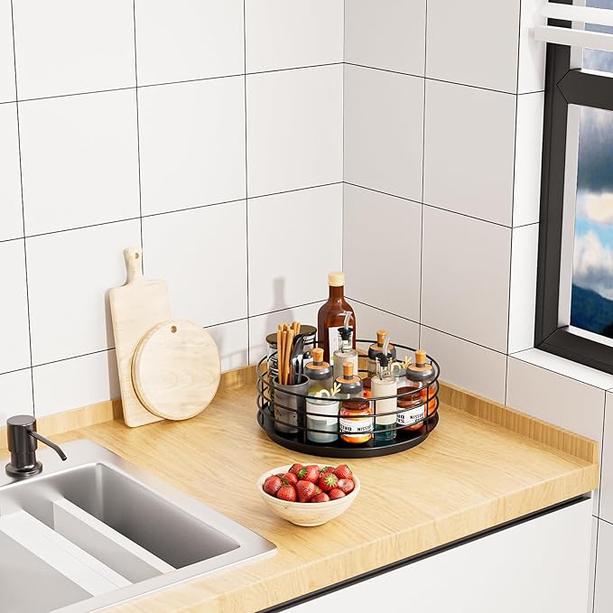 Snack Organizer - Versatile Snack Storage, Lazy Susan with Convenient Grab-and-Go Design, Metal Snack Holder for Home, Office, Breakroom, 10.85" L x 10.85" W x 5" H (Matte Black)
