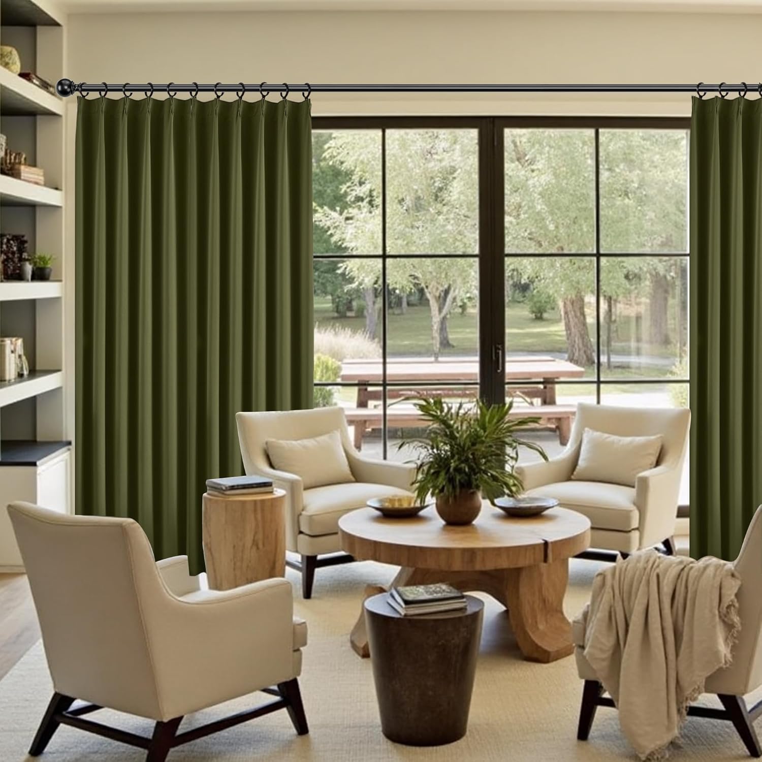 KangBang Olive Green Pinch Pleated Blackout Curtains 108 Inches Long for Hall Windows, Energy Saving Light Blocking Soft & Vertical Window Panels Ceiling to Floor for Villa 2 Panels, 40Wx108L