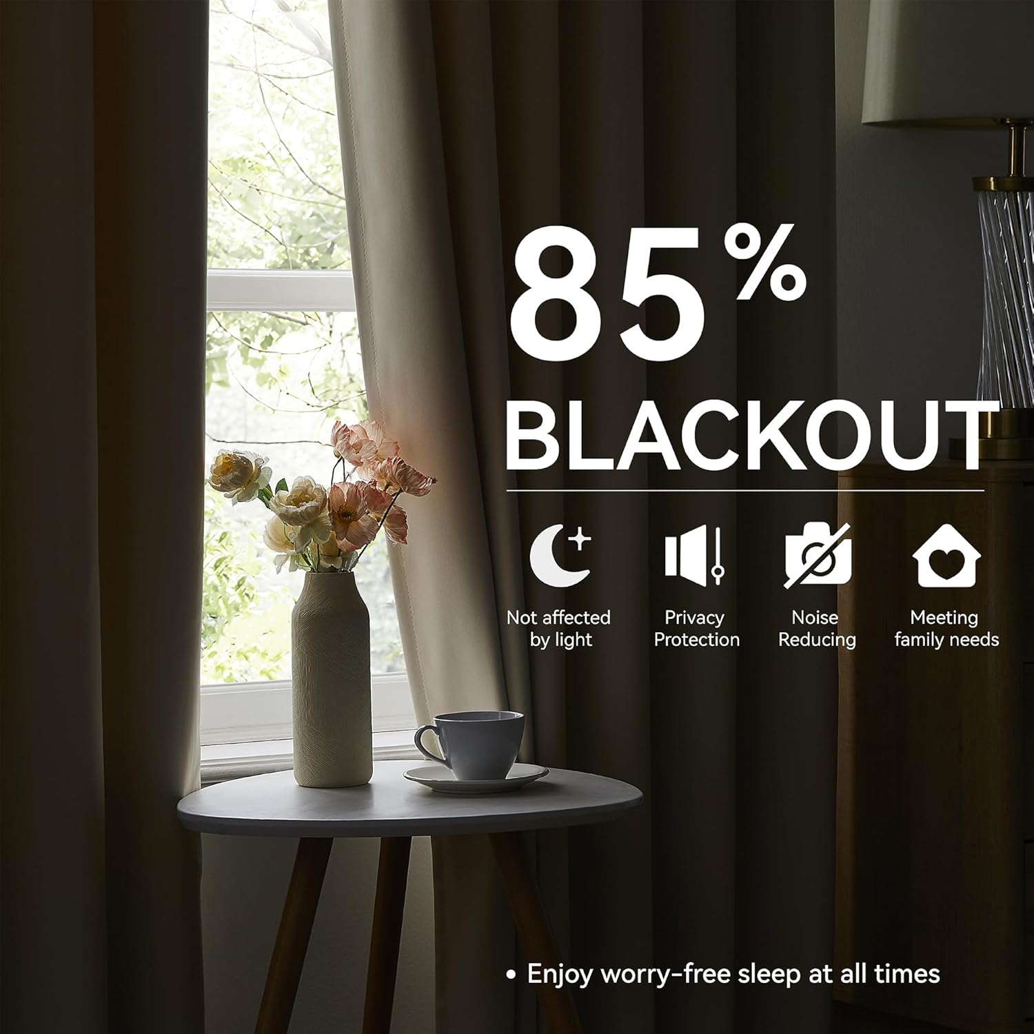 • Room Darkening & Thermal Insulated:Crafted to block out up to 85%–95% of sunlight, these blackout curtains help darken the room, reduce glare, and provide enhanced privacy—ideal for napping, movie nights, or light-sensitive settings. The thermal insulation offers excellent energy saving performance by keeping rooms warmer in winter and cooler in summer. These curtains also provide sound dampening benefits, helping to reduce outside noise for a more peaceful environment.