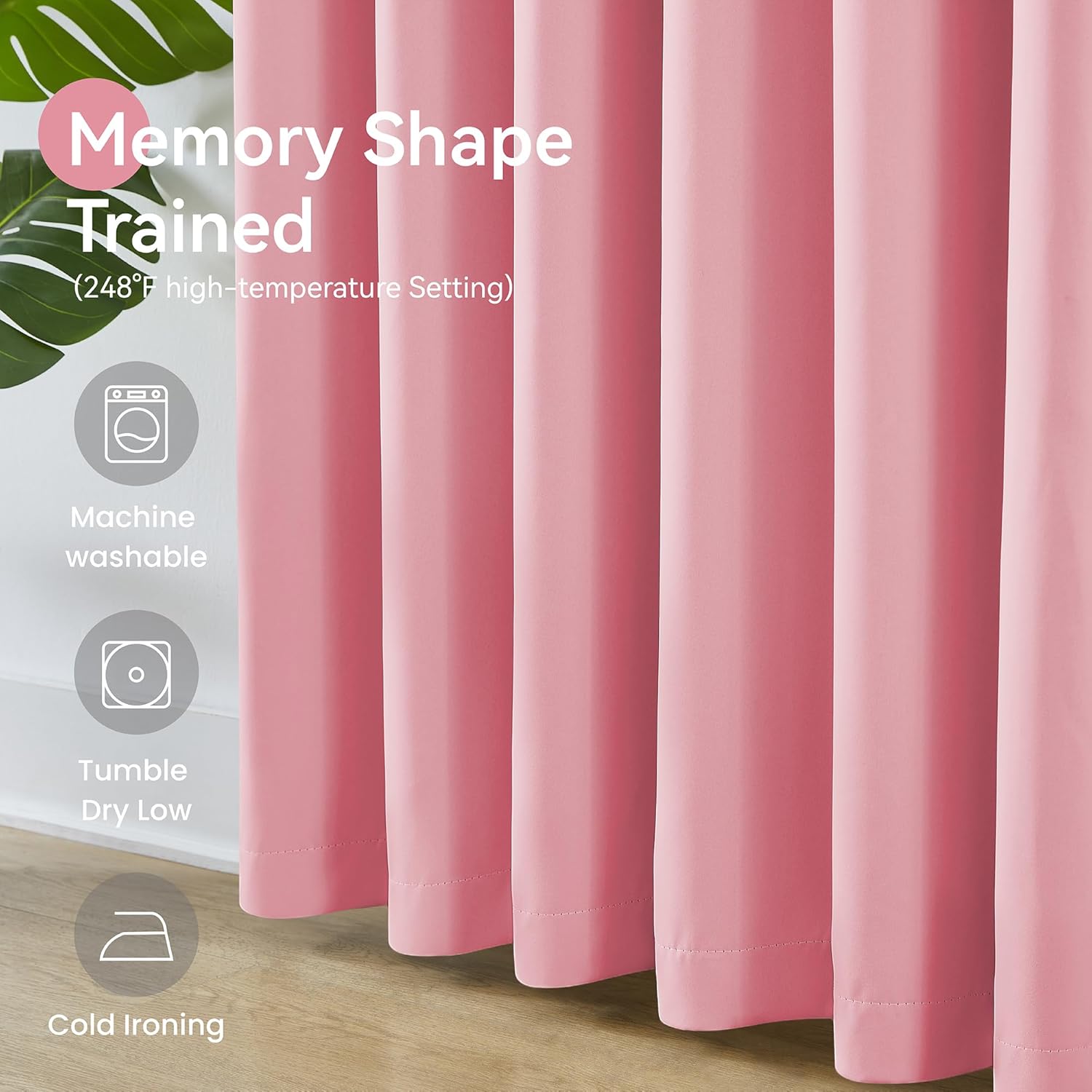 KangBang Rose Pink Window Curtain Panels 96 Inches Long 2 PCs, Pinch Pleated Room Darkening Elegant Curtains for Living Room Nursery with Hooks, Soft & Vertical Modern Lush Decor,40x96 Inch