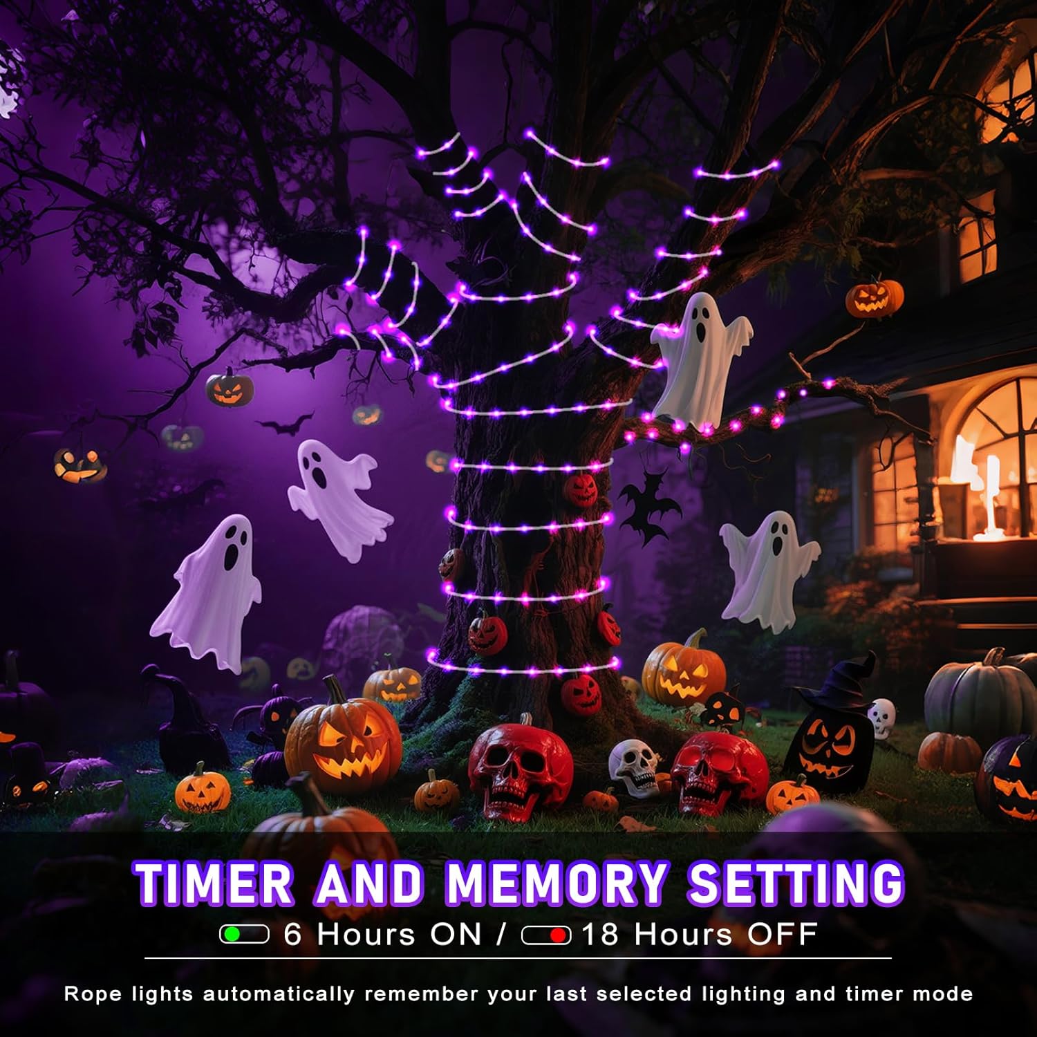 • 【Flexible and Timer】- The flexible purple Halloween lights allows you to bend the lights into various shapes to decorate any occasion. Easily wrap around trees, poles, fences, or furnitures. You can set timer, the string lights for outside will be 6 hours on and 18 hours off per day. Perfect for decorating both indoor spaces like living rooms and bedrooms.