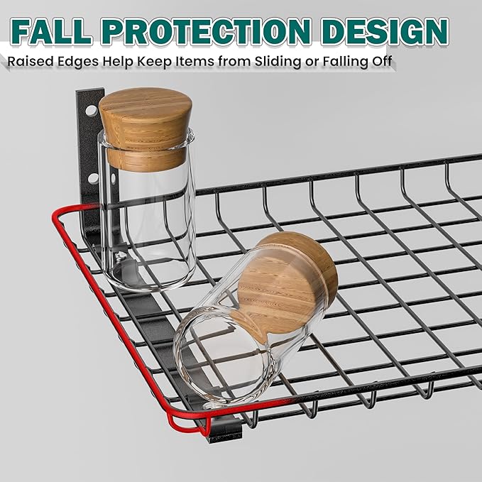 • Durable Steel Construction: Made from high-quality steel with a rust-resistant powder-coated finish, each wall shelf supports up to 60 lbs and ensures long-lasting stability and durability, even in humid environments