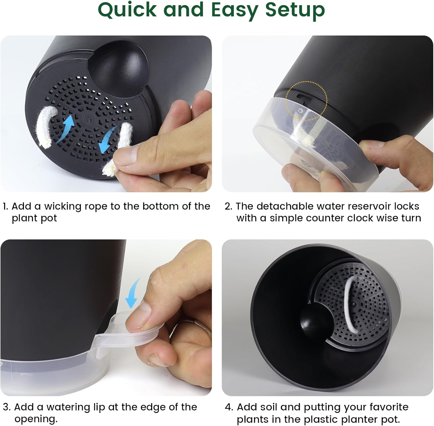 • 【Self-Watering System】These 6 inch small plant pots are designed with a wick rope that automatically deliver water to plant roots, reducing the need for frequent watering. The set of 6 pots for plants are perfect for busy individuals and forgetful gardeners