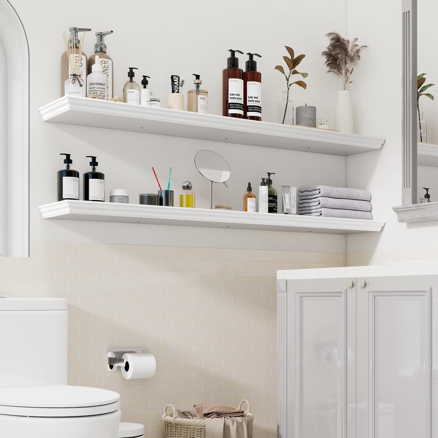 • Multi-Purpose Floating Shelves for Wall: Upgrade any space with these retro, sleek white shelves! Perfect as shelves for the room wall, book shelf for the wall, living Room, office, bedroom, bathroom, or kitchen shelves