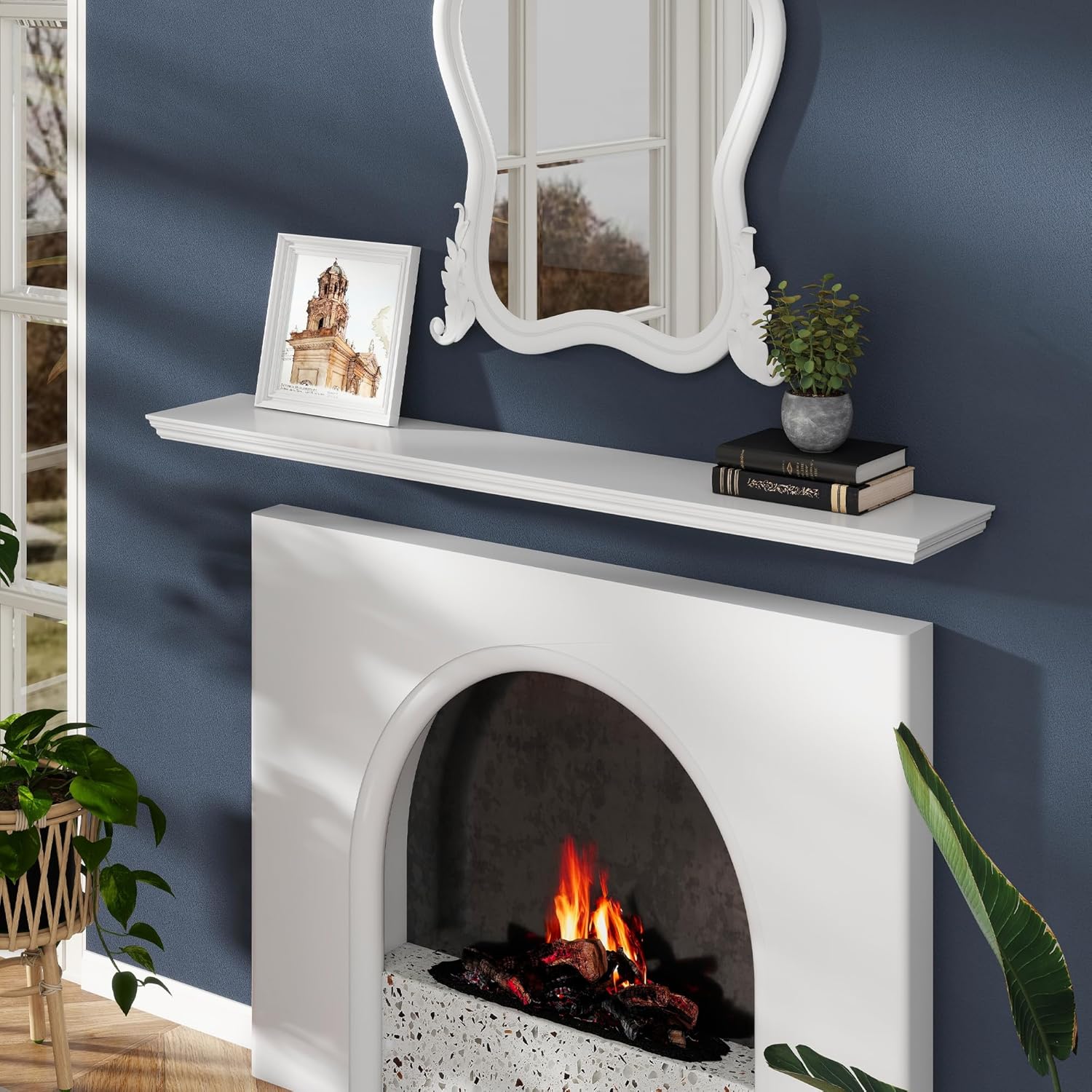 Floating Shelves for Wall, 55 Inch Long Wall Mounted White Hanging Shelf for Kitchen, Living Room, Office, Bedroom, Bathroom, Retro Vintage Wood Bookshelf for House Decor