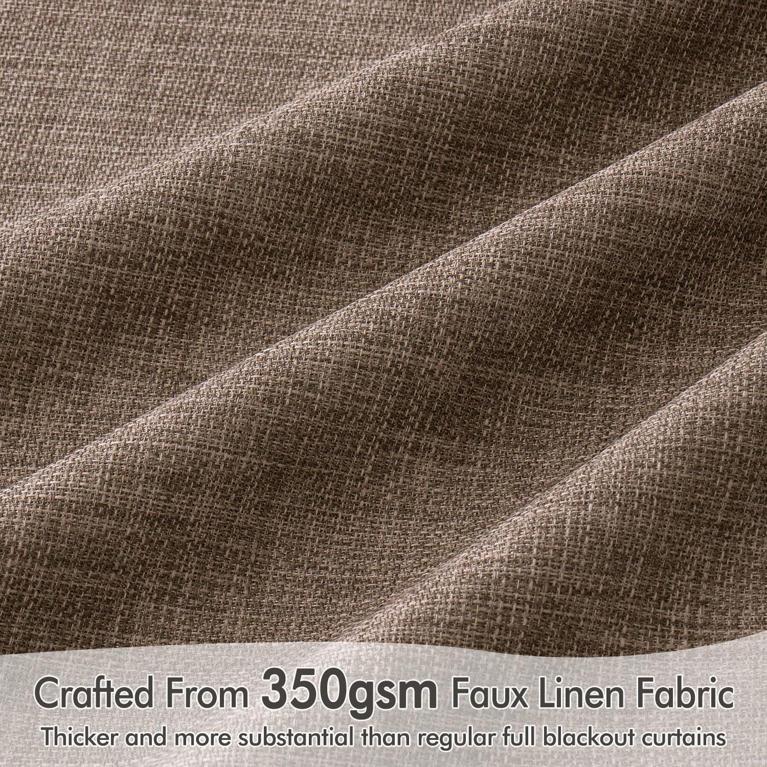 • INNOVATED MATERIAL: Crafted from premium thick linen-like fabric with a substantial weight of 350 GSM, these curtains surpass standard blackout options in thickness, luxurious texture, and functionality. The advanced four-layer coating ensures 100% light blocking, insulation against heat and cold, and effective noise reduction. The vintage burlap texture adds timeless charm and highlights their high-quality feel. Energy-efficient and durable, they provide privacy and a cozy atmosphere year-round