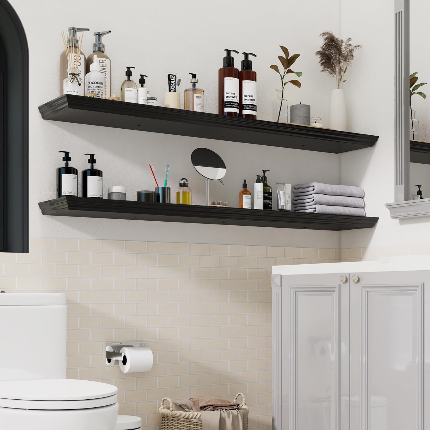 • Multi-Purpose Floating Shelves for Wall: Upgrade any space with these retro, sleek black shelves! Perfect as shelves for the room wall, book shelf for the wall, living Room, office, bedroom, bathroom, or kitchen shelves