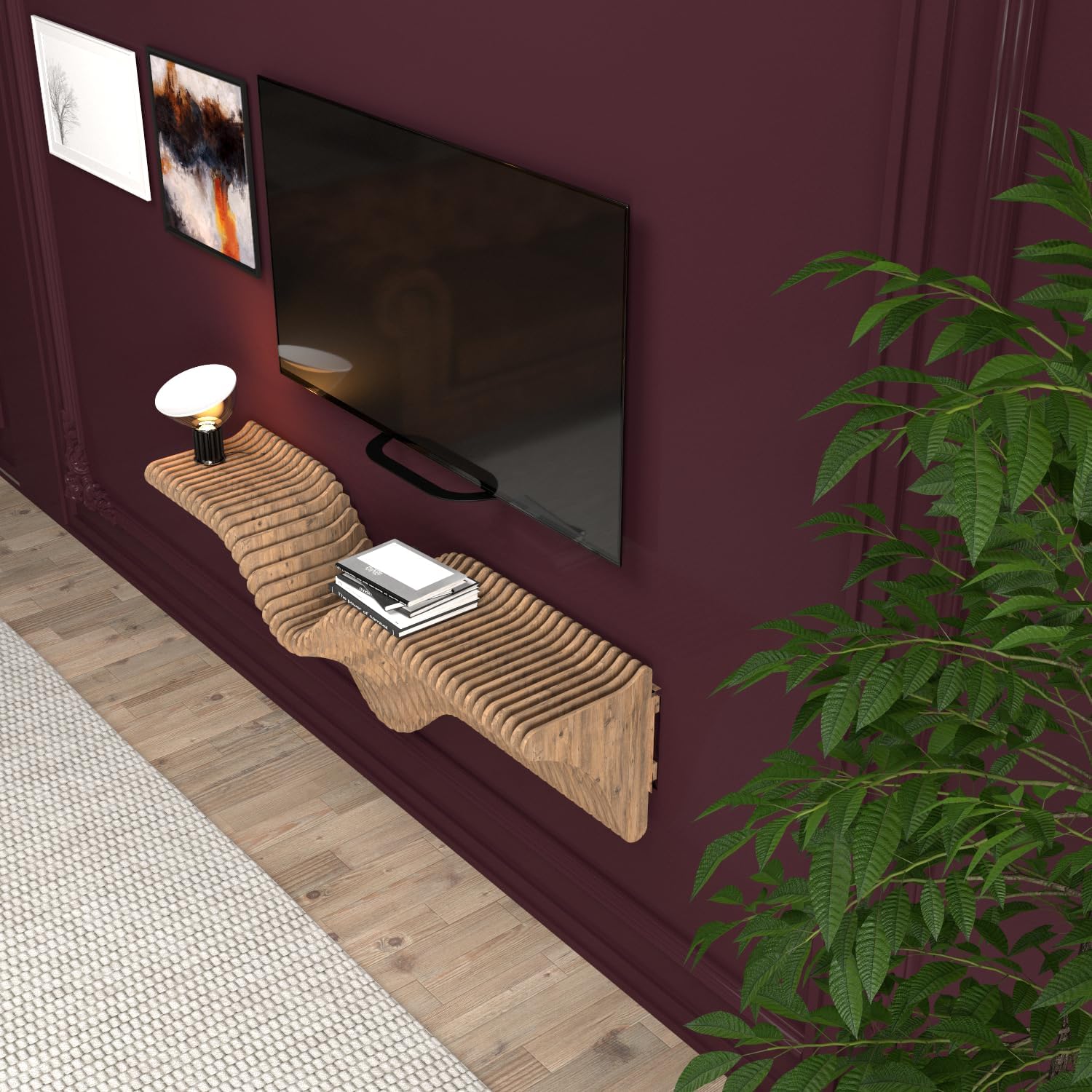• Batamex 40" Wavy Floating Shelf – Where modern design meets everyday versatility. This sculptural teak-finished piece effortlessly transforms from a sleek TV stand to a floating display shelf or console table, adapting to your needs. The mesmerizing 3D wave pattern (100cm/40inch) makes a bold statement while offering practical storage.