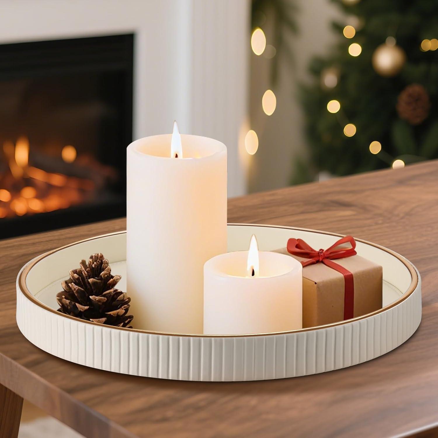 • Elegant Round Shape: Measuring 11.8'' Dia x 1.18''H(30cm x 3cm), the round profile offers ample space while maintaining a compact footprint, small items can be seen at a glance, easy to take out. Display candles, perfume, skincare, keys, coins, watches, remote controls, cosmetics, or decorative accents in style. Can be stacked to save space when not in use