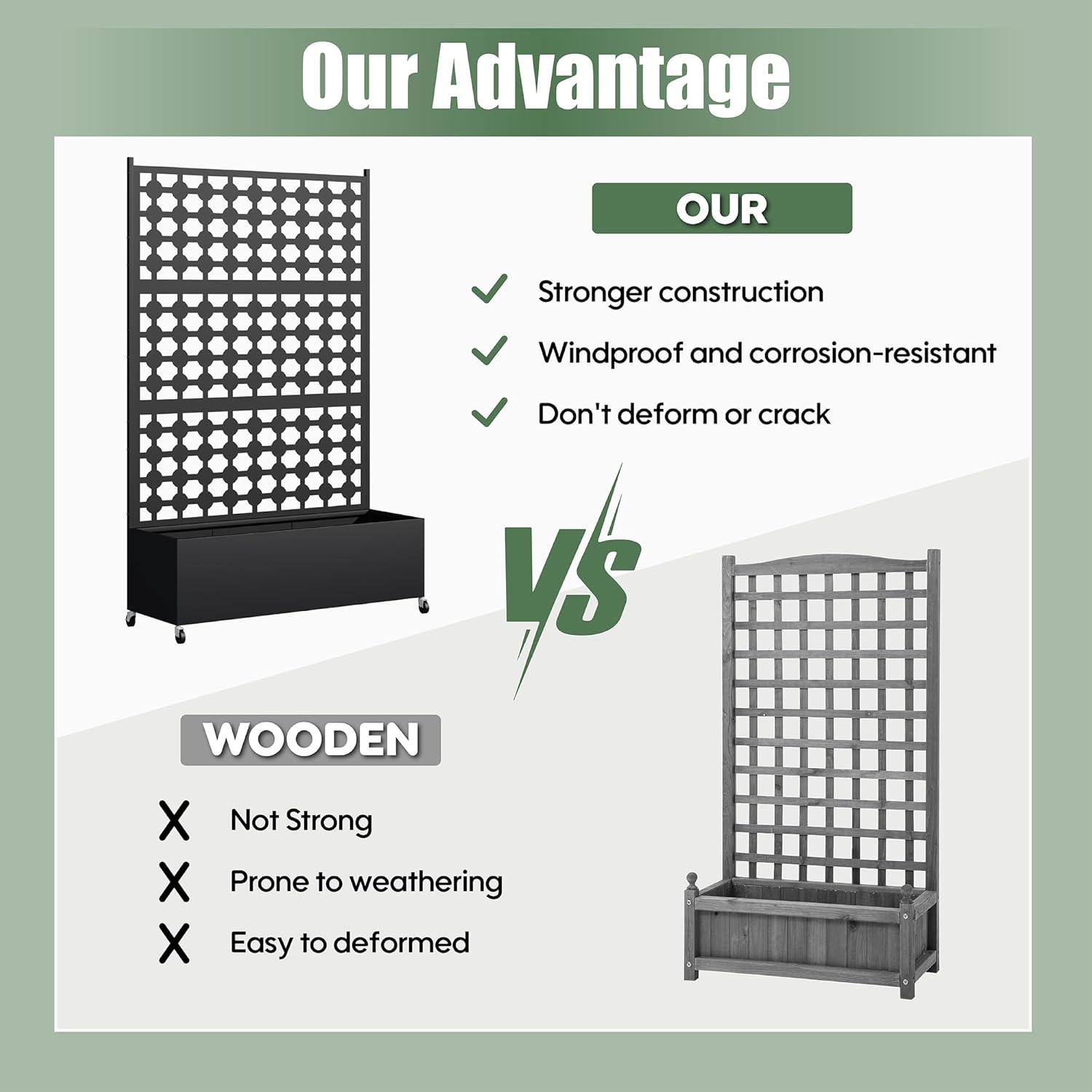 • Versatile Design--This metal planter with trellis serves triple purposes as an elevated garden bed for flowers/plants, a sturdy trellis for climbing flora, or a stylish privacy screen to enhance outdoor living spaces. Its adaptable structure makes it the ultimate gardening solution for diverse needs.