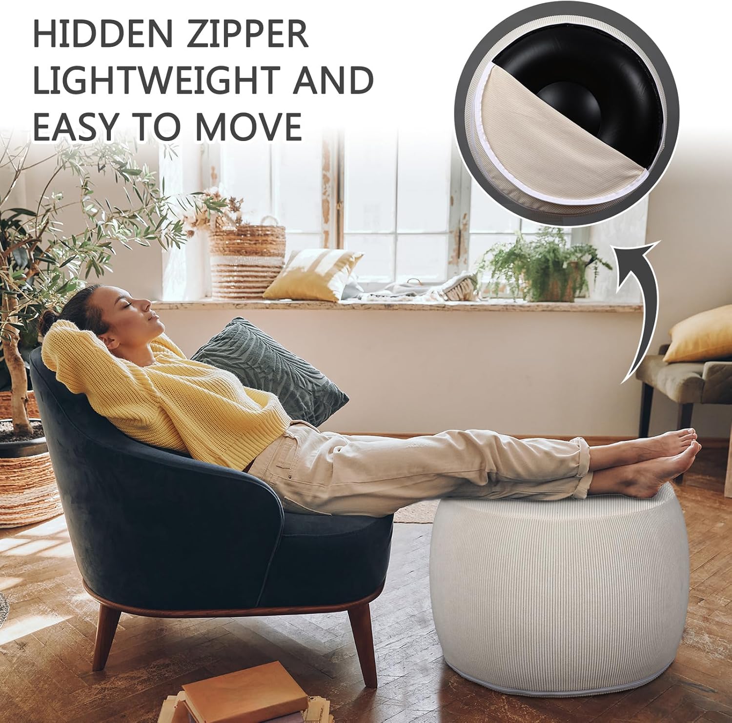 • Easy and Convenient Design: experience the simplicity of convenience with the inflatable PVC core of our modern ottoman; It's designed to preserve its shape while offering excellent foot support, whether you're seated or resting; The cover features a hidden zipper, is machine washable, and the lightweight design allows for easy portability