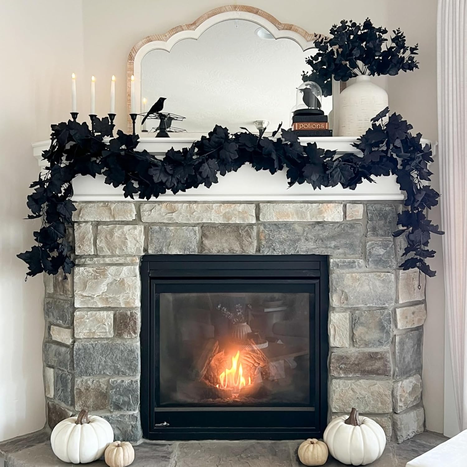 • DURABLE and REUSABLE: Sturdy and texture clear black garland are made of fabric, stems are made of plastic, but looks like real fresh preserved Hallowend Garland which is lightweight,no wilting, fading or get easily damaged. and adapt to all kinds of weather. Black fall maple leaves does not require any sort of special care.