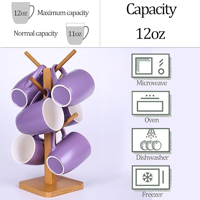 • Large Coffee Mug:The capacity of this ceramic coffee mug is the perfect size for daily use at home or in the office. The 6-piece set of purple coffee mugs is easy to serve guests or use throughout the day. These mugs can be used for various beverages such as coffee, tea, milk, and hot chocolate, allowing you to enjoy your leisure time with friends in different scenarios!