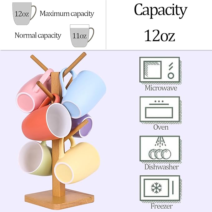• Matte Porcelain Coffee Mugs: Are you still looking for practical and comfortable coffee cups? The 12oz coffee mugs have plenty of space, perfect for serving a full cup of coffee or hot chocolate to start your enjoyable day! This coffee mugs set of 6 ceramic mugs is perfect for home and office use, allowing you to enjoy leisure time with friends in different scenarios!