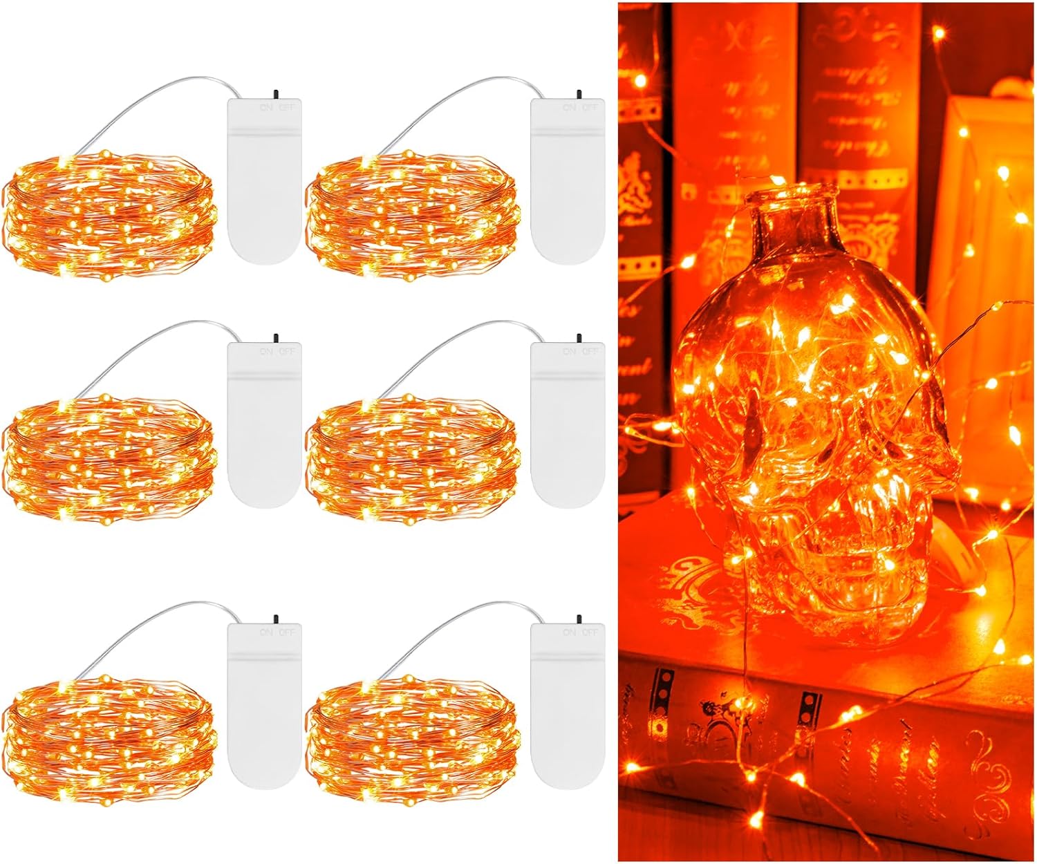 TingMiao Halloween Orange Fairy Lights Battery Operate,7.2ft 20 LEDs String Lights Silver Copper Wire for Hallowen Christmas DIY Decoration Wedding Party (6 Pack)